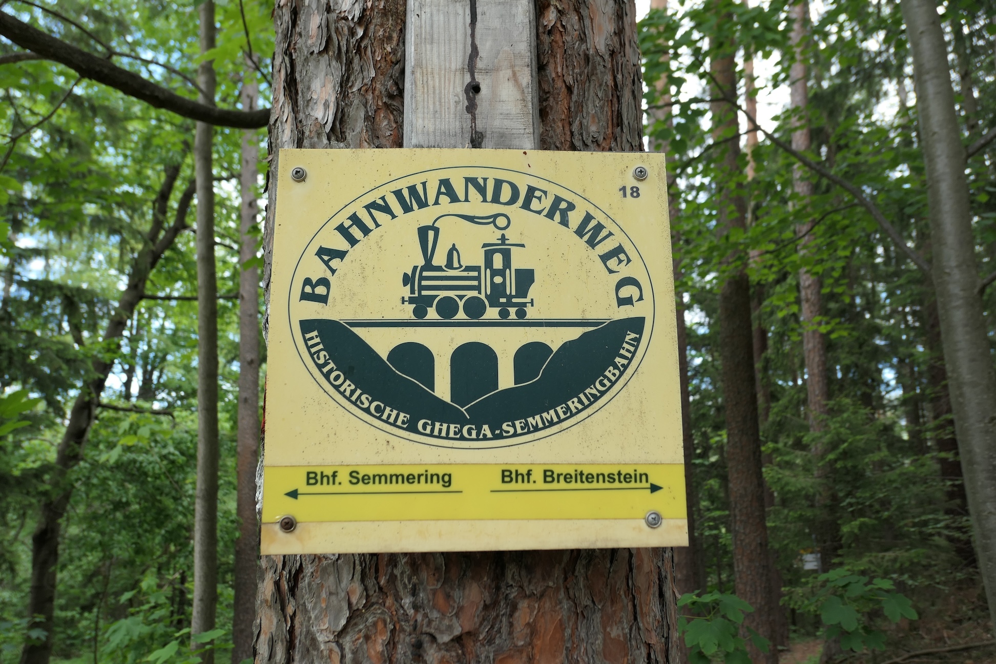 Die Semmeringbahn, die von Payerbach-Reichenau über den Semmering nach Mürzzuschlag führt, wurde von Carl von Ghega geplant und 1854 als erste normalspurige Gebirgsbahn Europas eröffnet. Seit 1998 gehört sie zum UNESCO-Weltkulturerbe. An der Bahnstrecke entlang gibt es einen Wanderweg in zwei Abschnitten – der steirische Bahnwanderweg von Mürzzuschlag bis Semmering und der niederösterreichische Bahnwanderweg, der von Semmering bis Payerbach-Reichenau oder Gloggnitz führt. Ich habe die niederösterreichische Variante bis Gloggnitz gewählt und die hatte es in sich, denn es waren nicht nur 25 Kilometer (auch „dank“ geplanter und ungeplanter Umwege), sondern auch etwa 650 Höhenmeter zu überwinden. Die Anstrengung hat sich aber zumindest auf der ersten Hälfte der Strecke mehr als gelohnt!