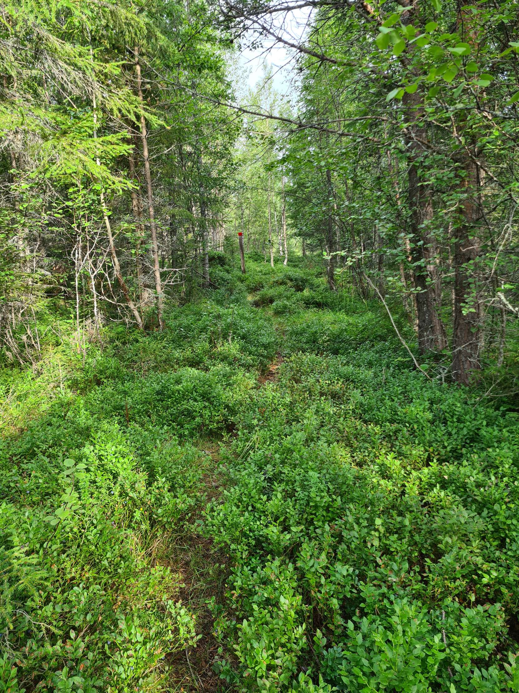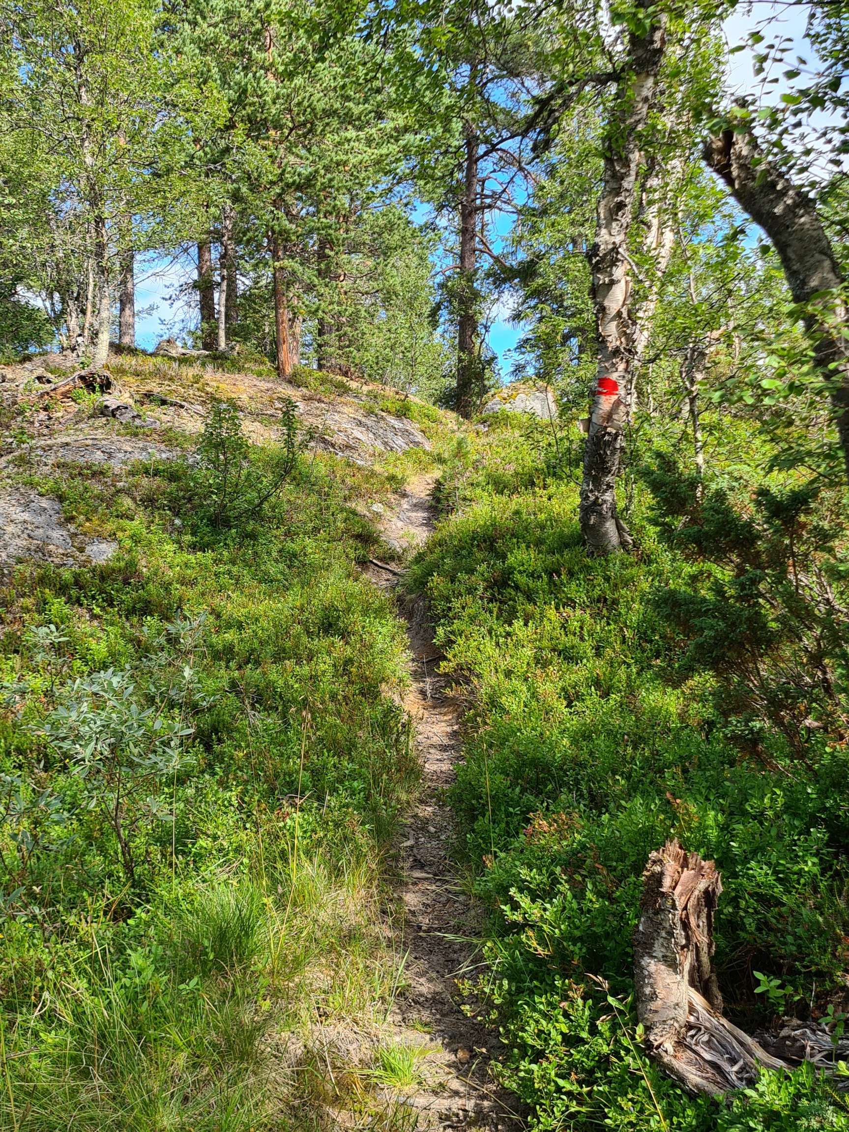 Es ging nun beständig bergauf auf schmalen Pfaden, die zunächst durch den Wald und unzählige Heidelbeersträucher führten.