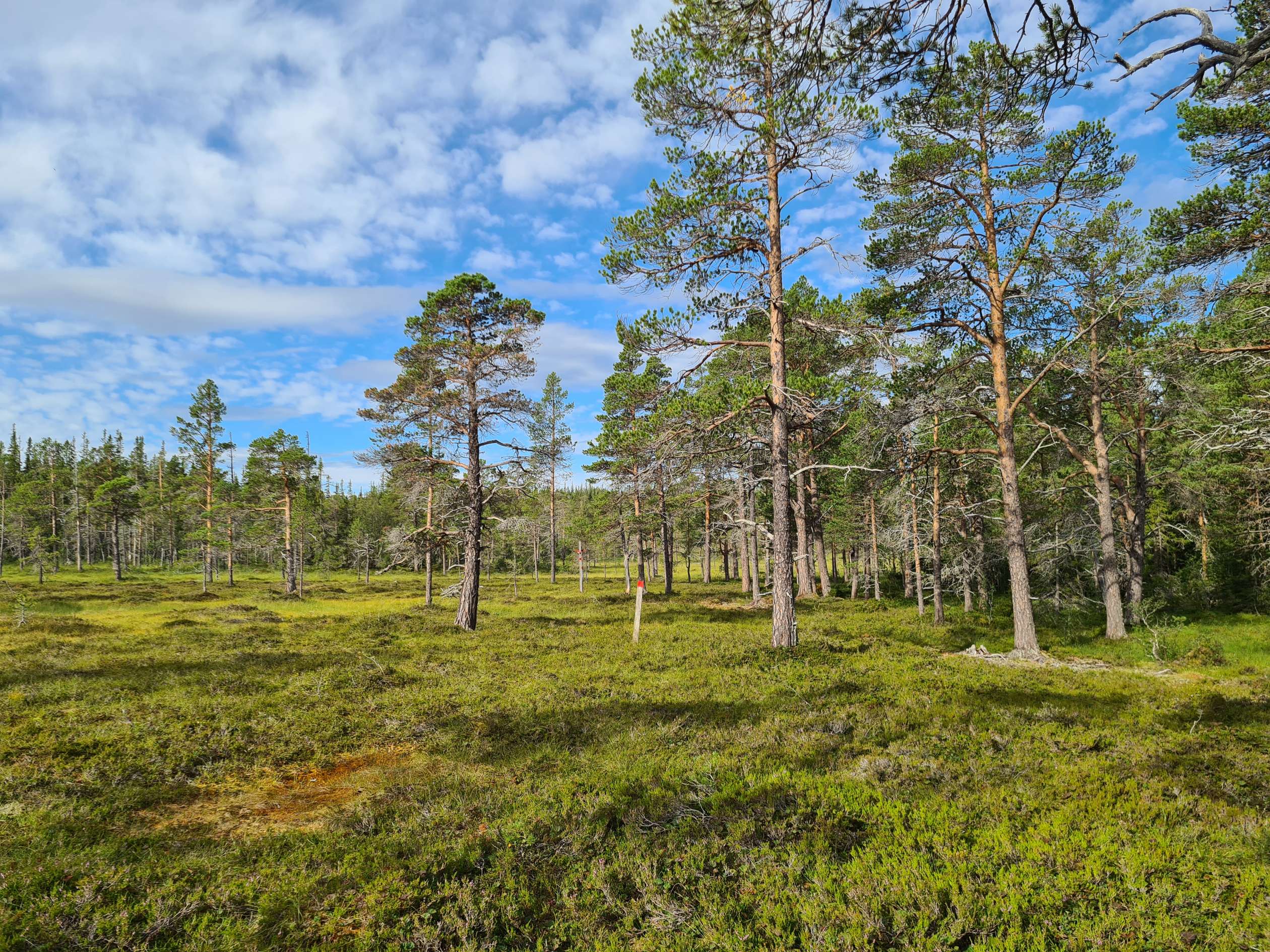 Später ging es durchs Moor, wo der Boden sehr feucht war, aber immerhin nicht zu nass. Da manchmal kein Weg erkennbar war, hieß es anhand der roten Markierungen navigieren, die aber auch in sehr kurzen Abständen zu finden waren.