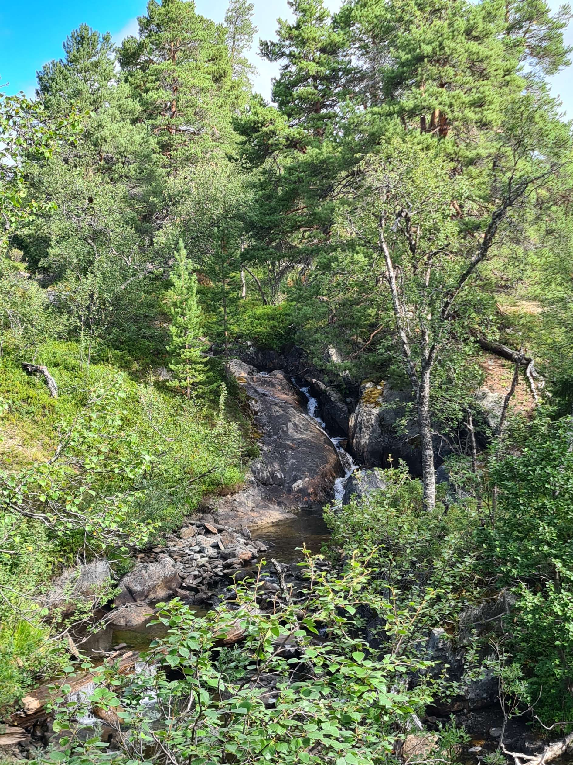 Es ging in stetiger, sanfter Steigung bergauf. Nur stellenweise wurde es etwas steiler. Neben mir gluckerte ein Bach, der manchmal auch in kleinen Wasserfällen bergabstürzte.
