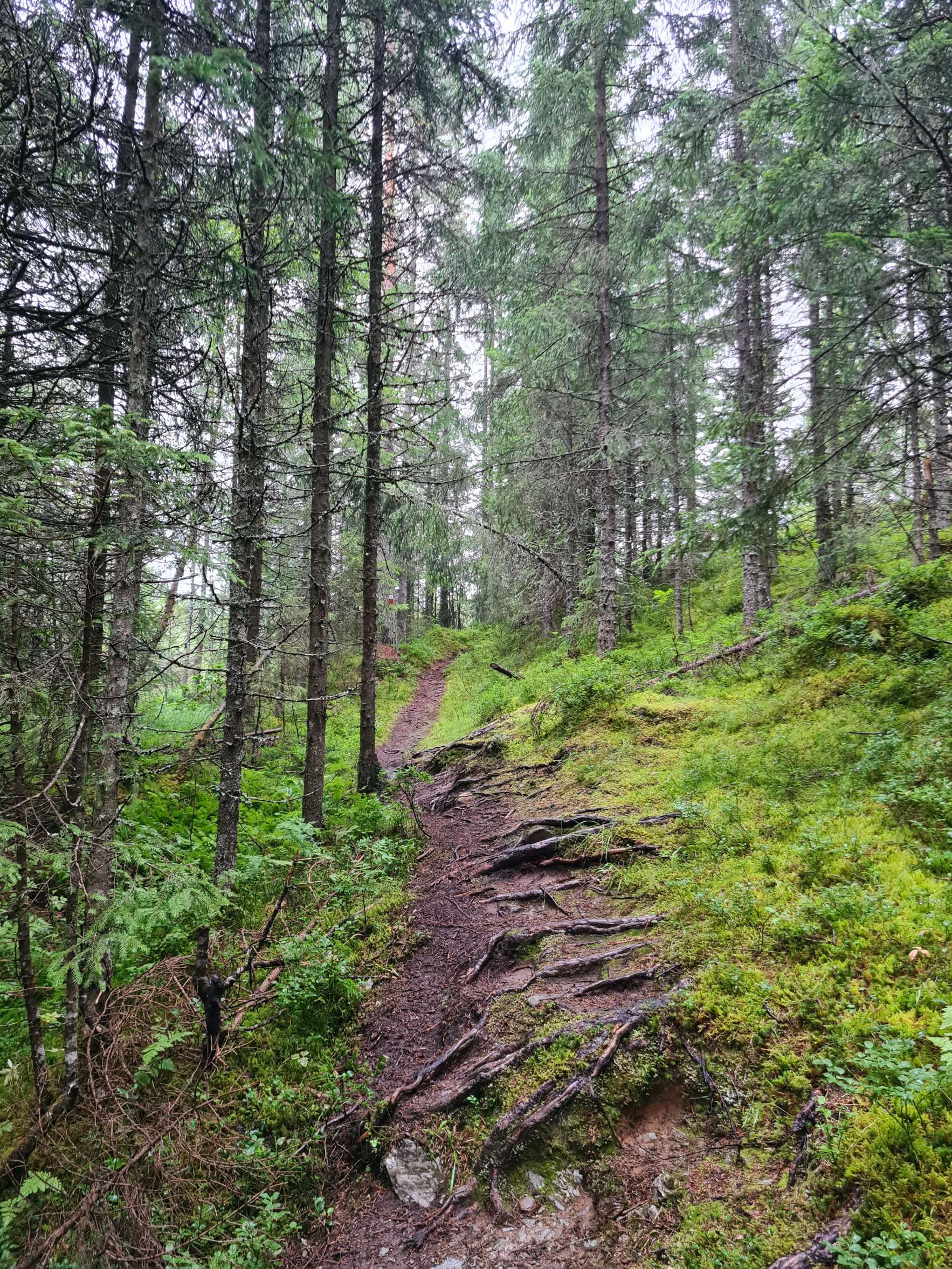 Bald ging es von der Straße in den Wald hinein und dann fing es doch zu regnen an.