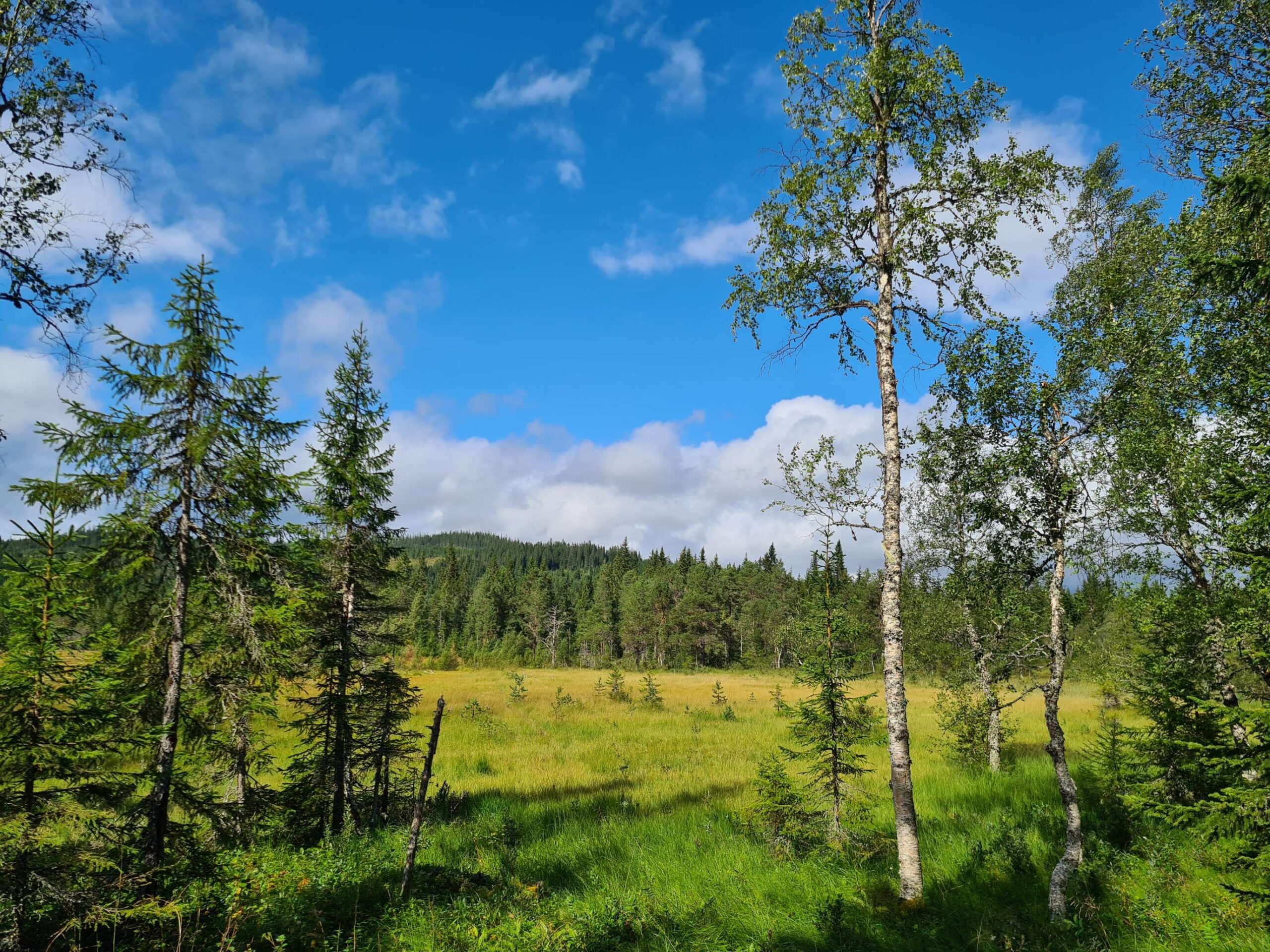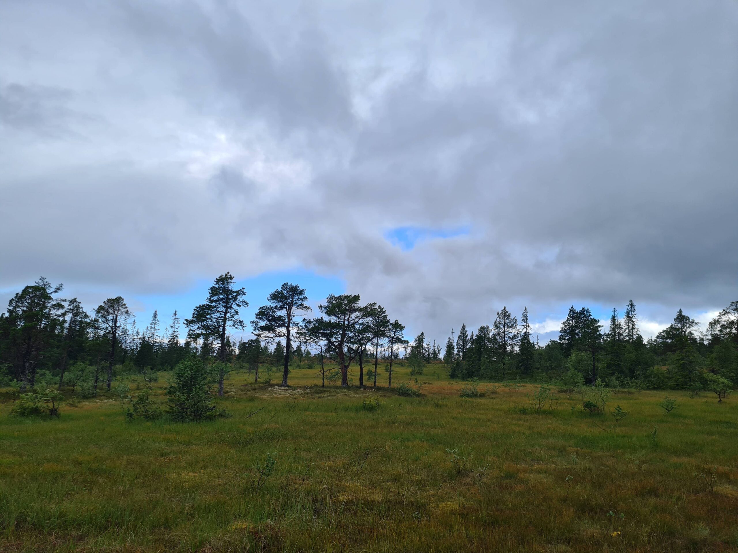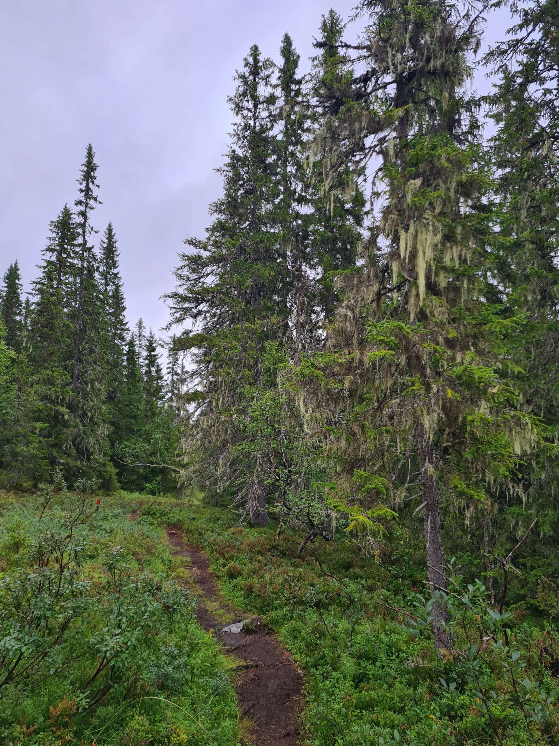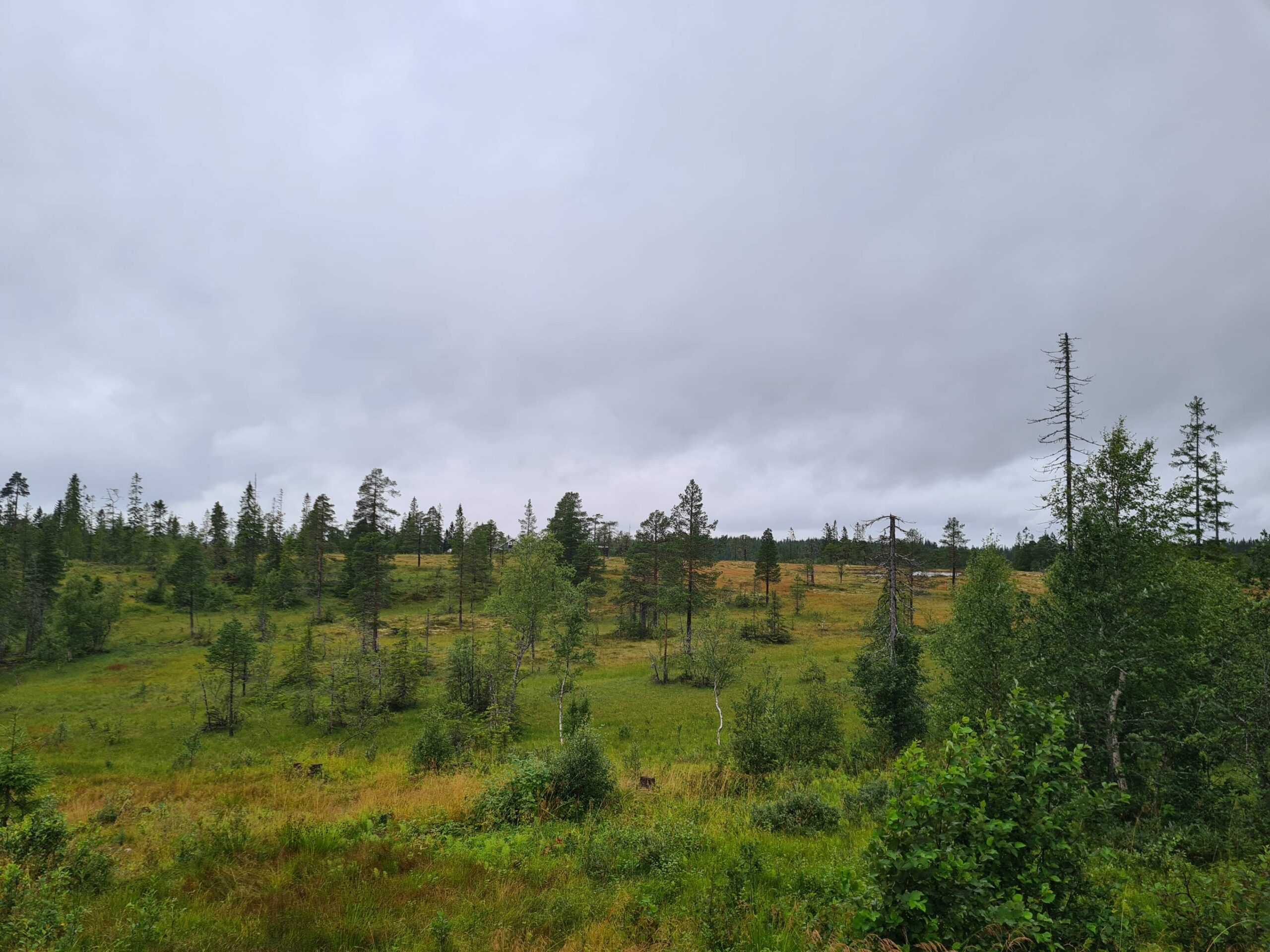 Hier hatte bereits eine ukrainische Pilgerin Schutz gesucht und gemeinsam warteten wir darauf, dass der Regen nachließ. Als das schließlich der Fall war, machte sich die andere Pilgerin wieder auf den Weg, während ich gleich noch eine frühe Mittagspause einlegte. Danach wanderte auch ich wieder los. Es ging nun ins Moor hinein, was sehr schön und bei diesem Wetter auch etwas mystisch war. Auf diesen Abschnitt hatte ich mich schon sehr gefreut.