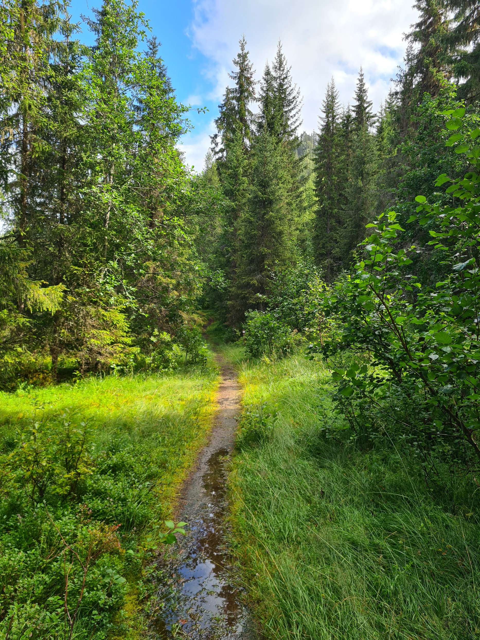 Nach einem kurzen Abschnitt auf einer Forststraße ging es erneut in den Wald und ins Moor. Wie auch schon auf den Kilometern zuvor gab es unzählige Heidelbeeren.