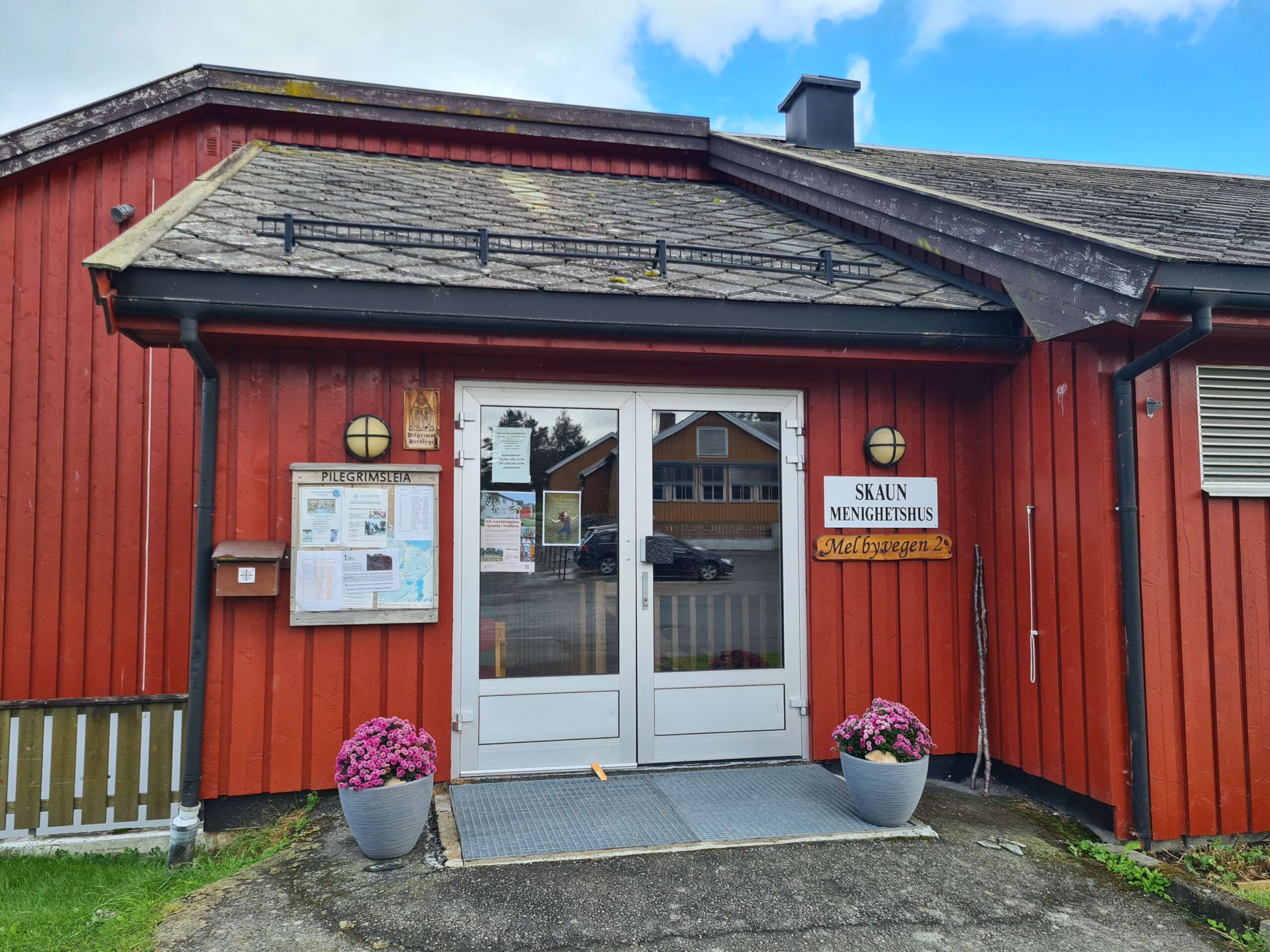 Nach etwa 20 Kilometern erreichte ich schließlich Skaun, wo ich beim Pfarrhaus auf die ukrainische Pilgerin traf. Sie war diejenige, die keine Gelegenheit zum Telefonieren hatte, beschloss nun aber noch etwas weiter zu gehen. Und ich musste auch nicht mehr anrufen, damit jemand das Pfarrheim aufsperrte, da bereits zwei deutsche Pilger hier waren. Wir richteten uns in den verschiedenen Ecken des Pfarrsaals jeweils häuslich ein.