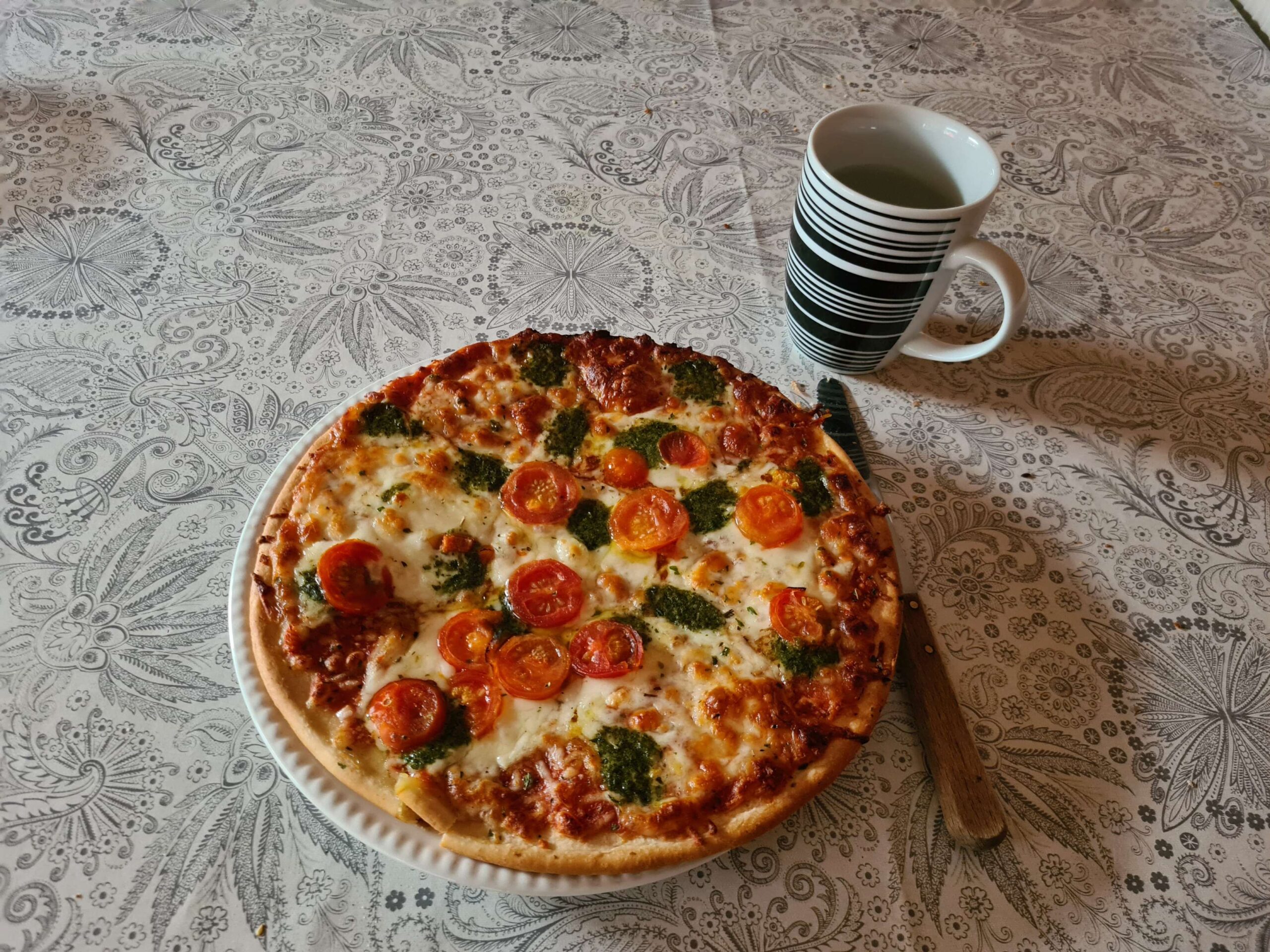 Nachdem ich die Küche inspiziert hatte, beschloss ich mir eine Tiefkühlpizza zu gönnen und ging im nahen Supermarkt einkaufen.