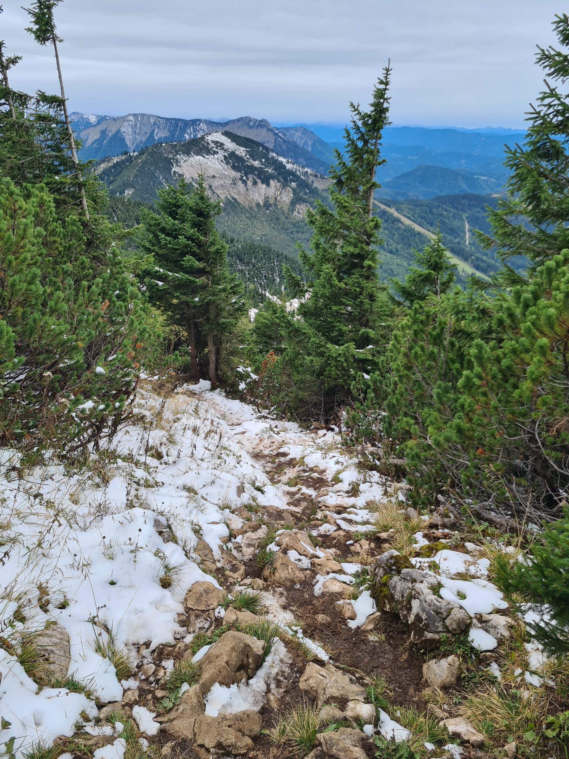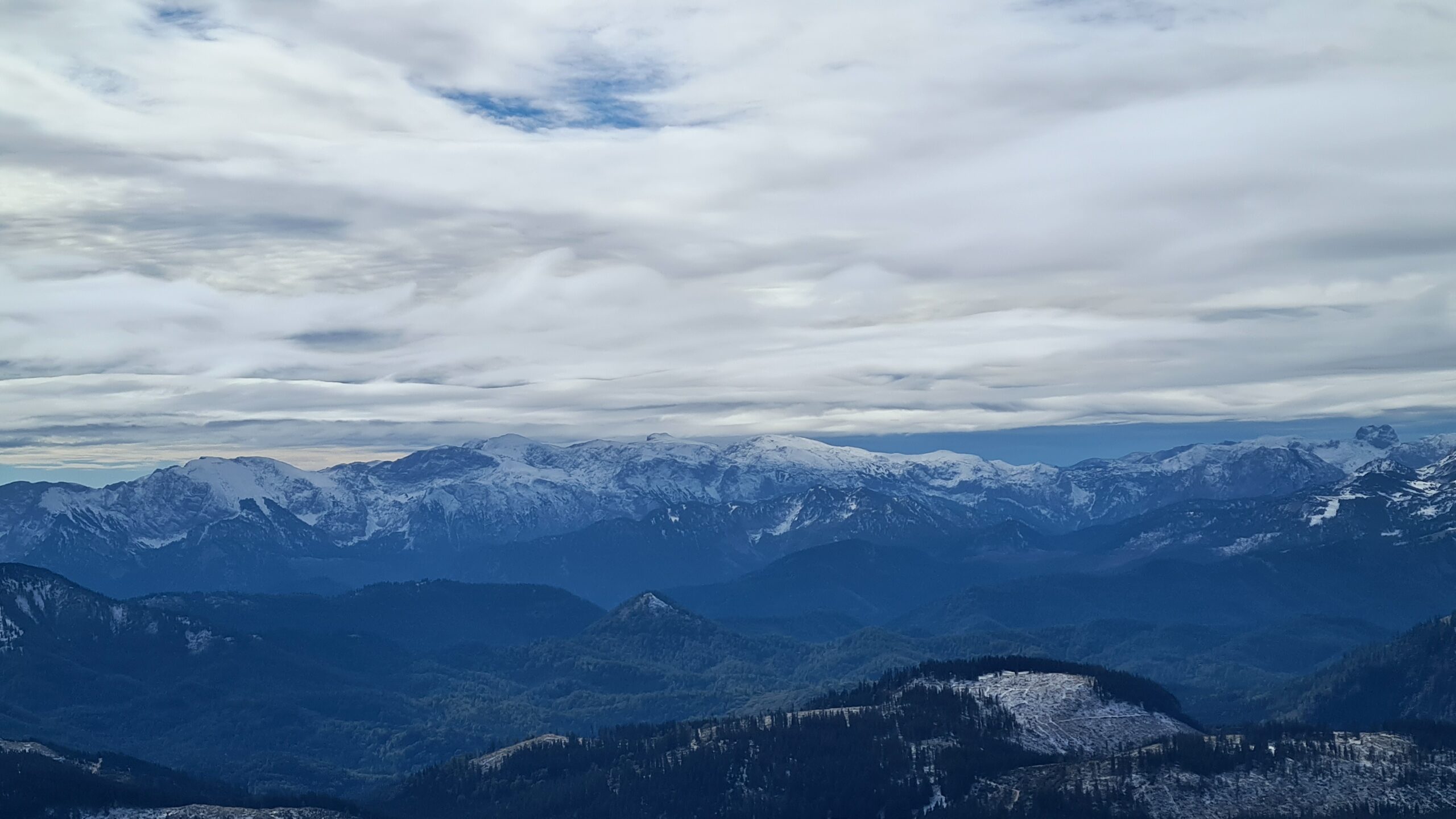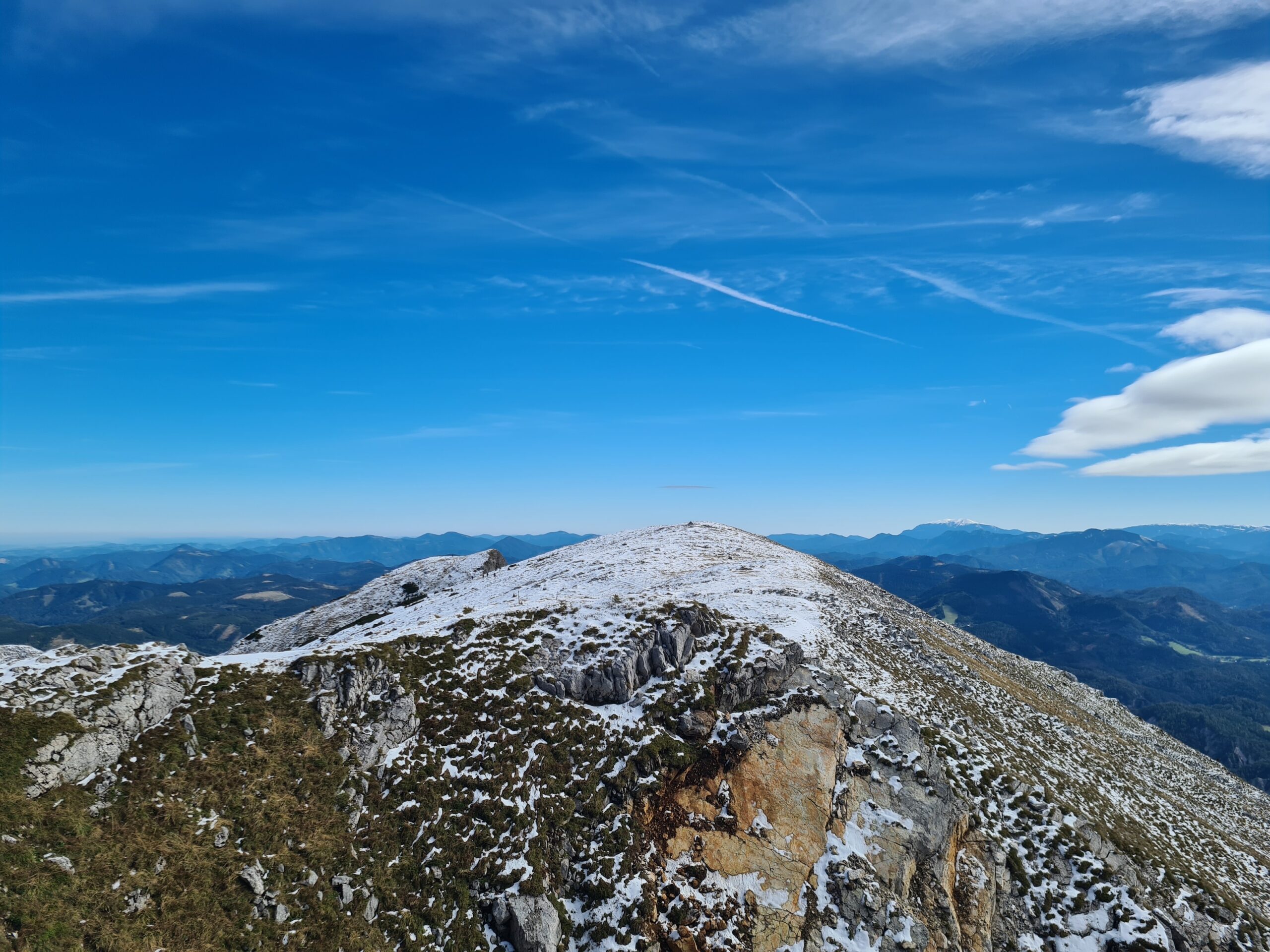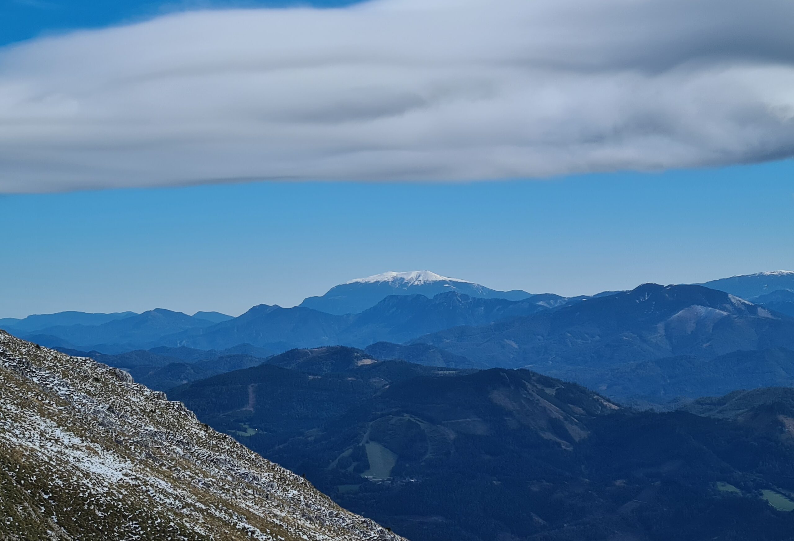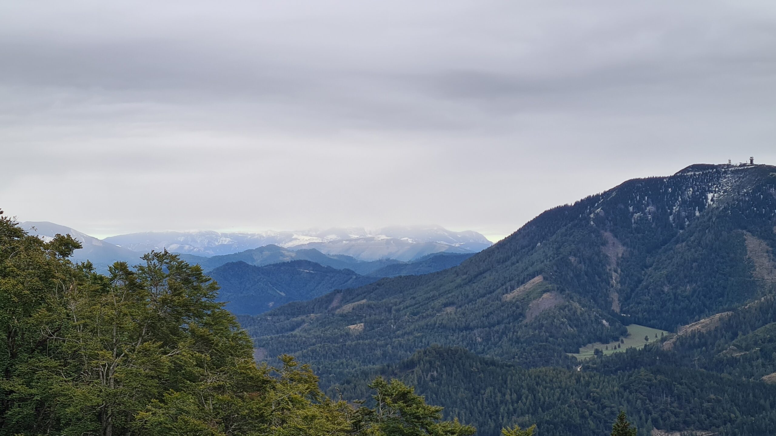 Neben vielen Berggipfeln, die ich nicht erkannte, konnte ich zumindest die Gemeindealpe und den Schneeberg identifizieren.