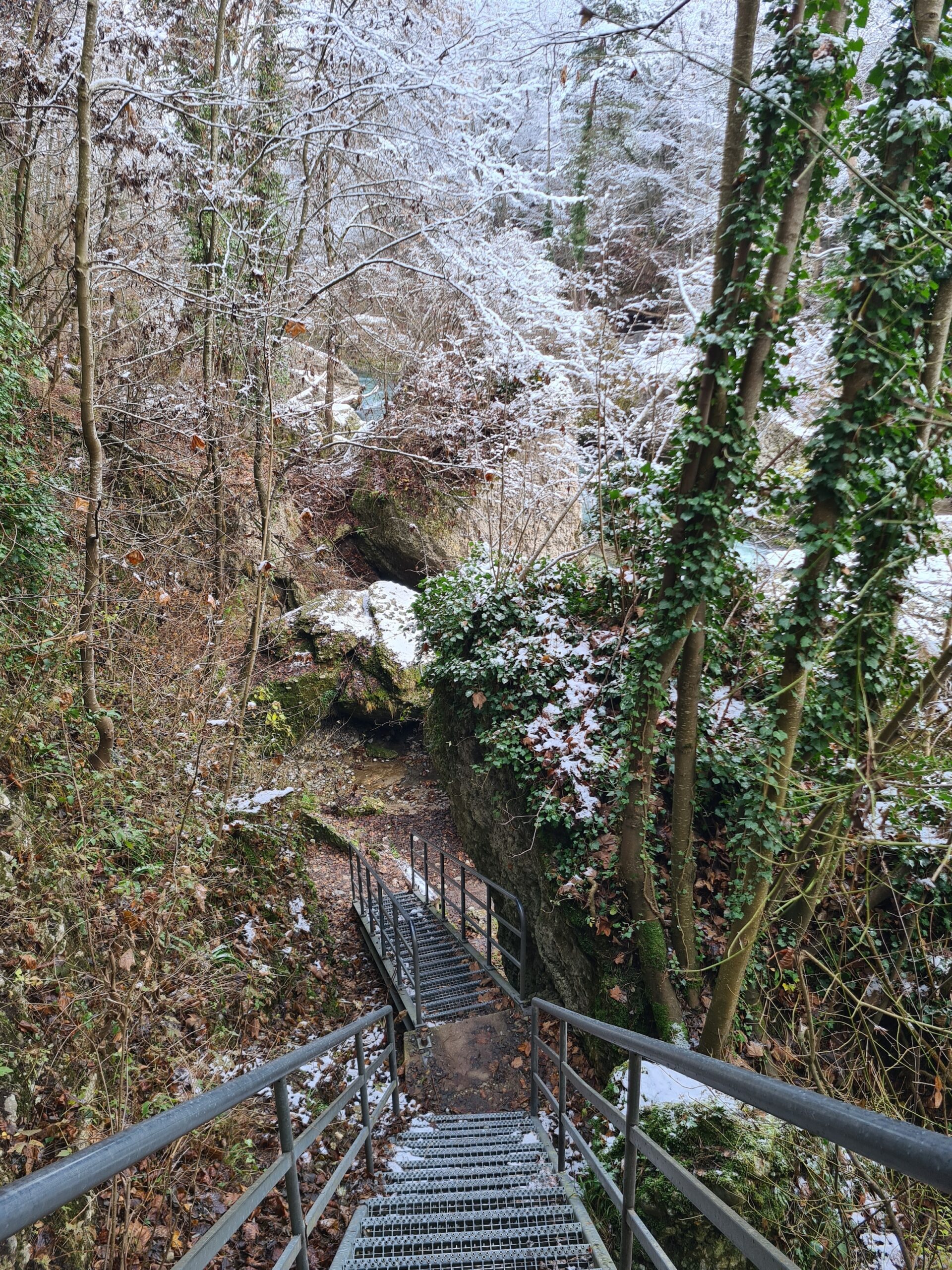 Diese erste zarte Schneeschicht ist wirklich wunderschön! Und die Runde durch die Schlucht sieht wirklich ansprechend aus – ich frage mich nur, wie schmall der Pfad zwischen den Felsen ist. Auf deinem Foto sieht es aus, als müsse man sich richtig durchquetschen. Oo