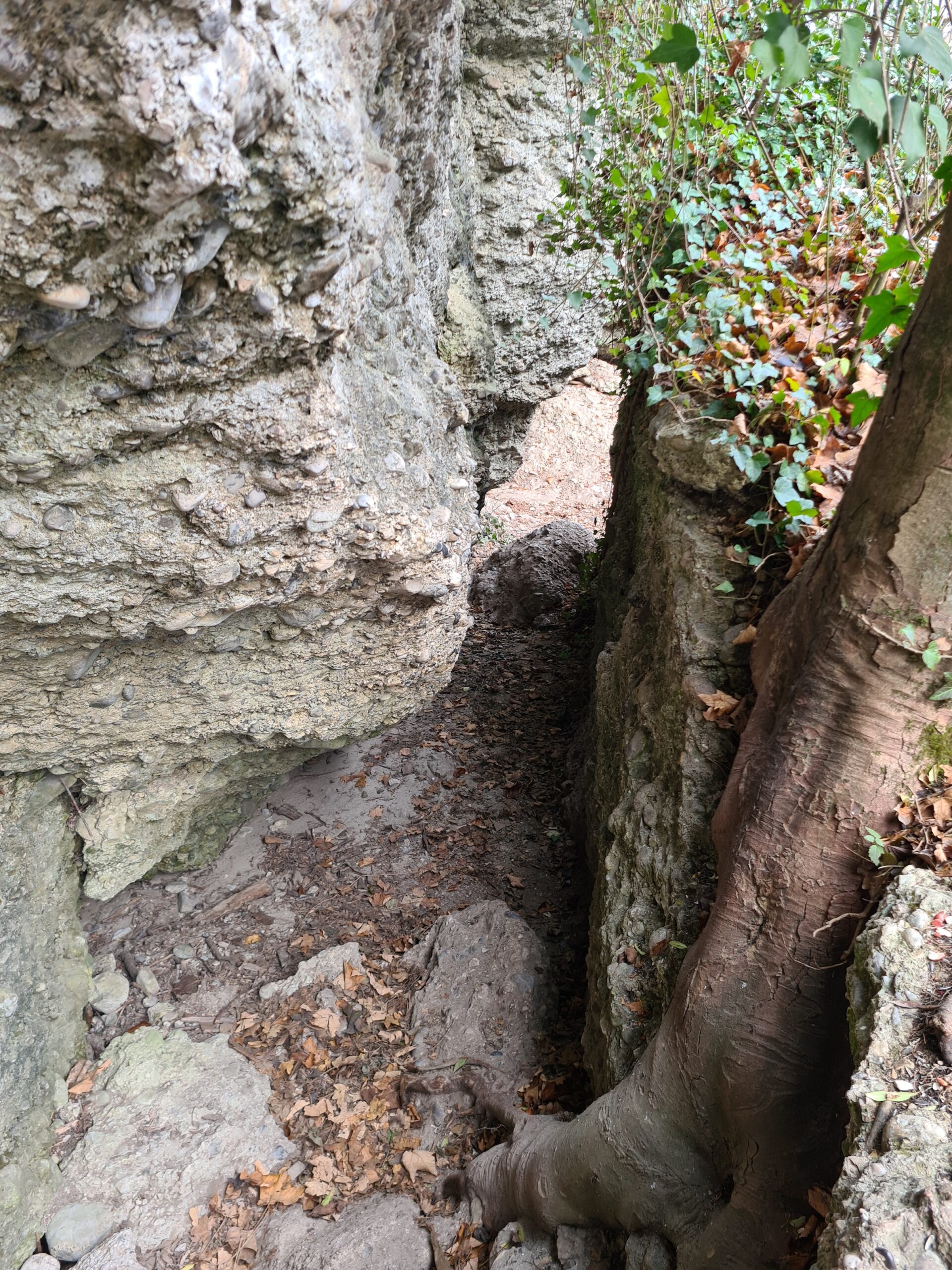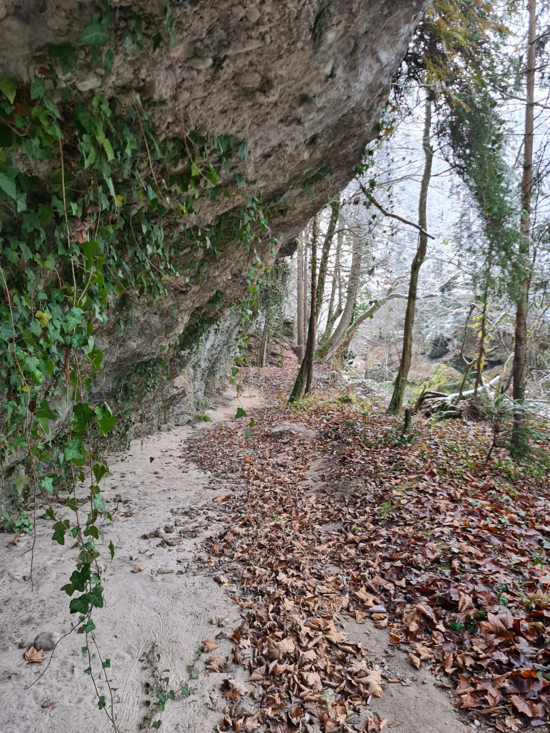 Hier musste ich nun wieder auf einen Weg weiter oberhalb wechseln, der am Waldrand entlangging und nur noch vereinzelt Blicke in die Schlucht bot.