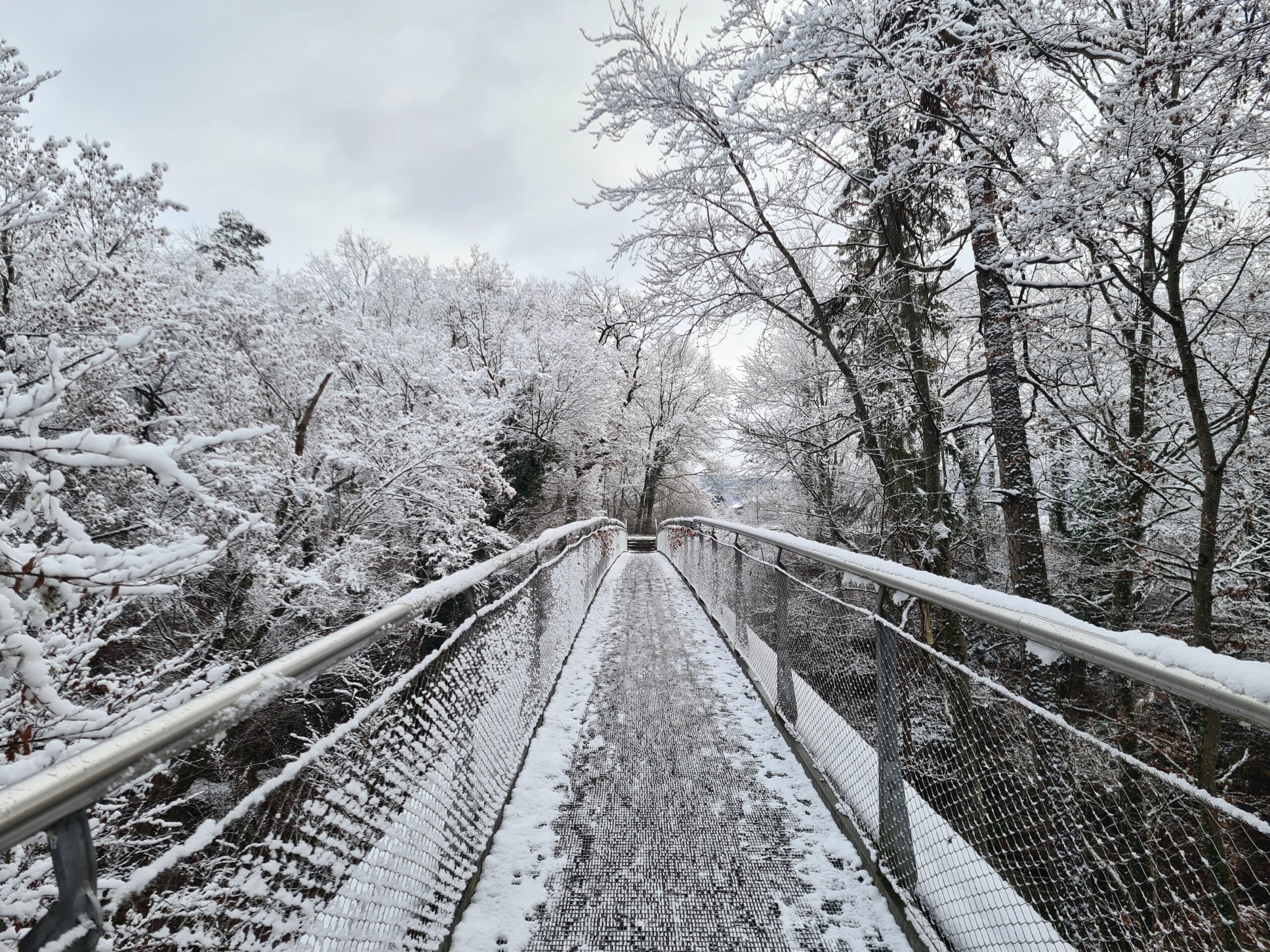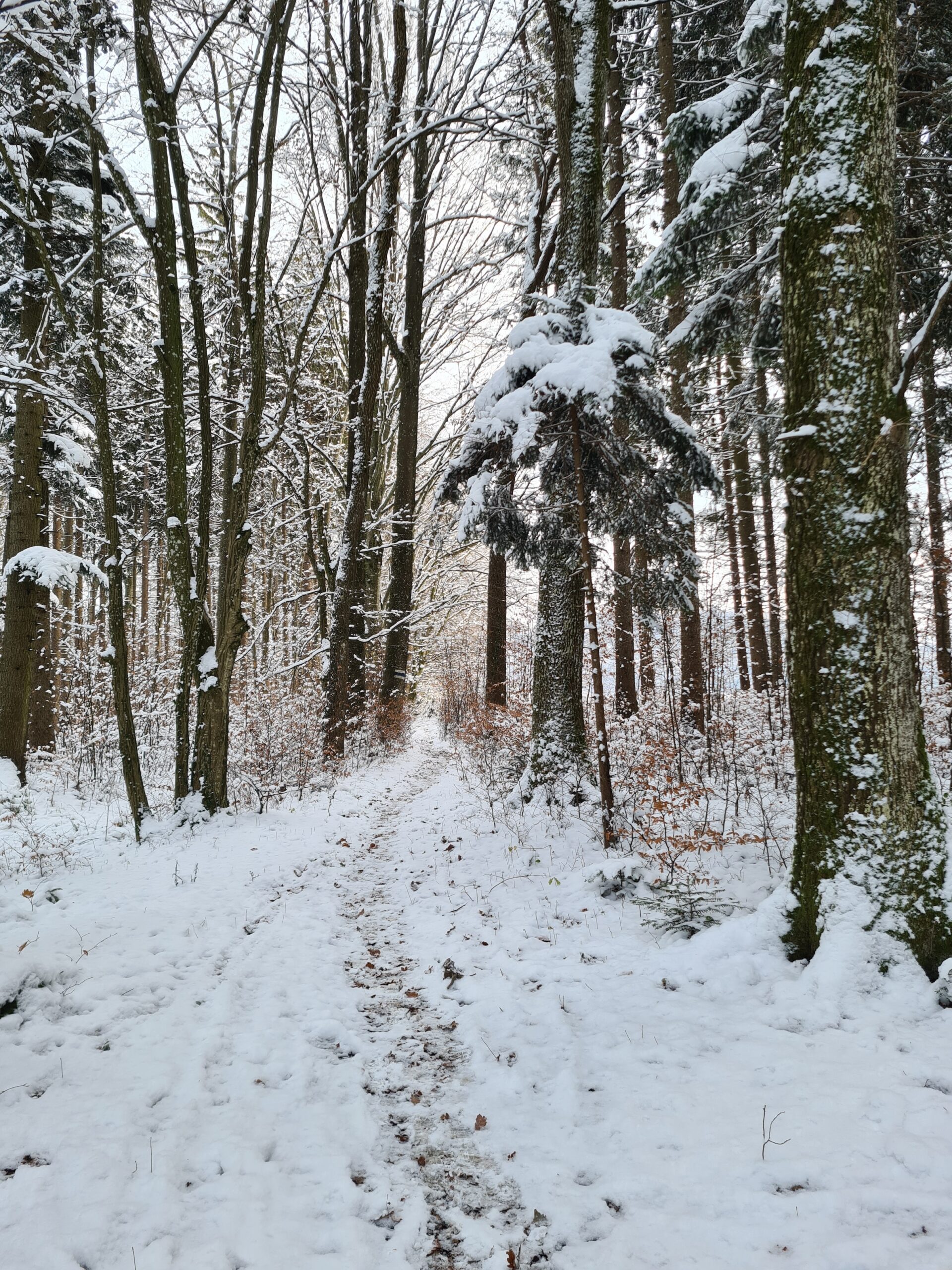 Fazit: Von mir aus hätte der Herbst zwar gern noch länger dauern können, aber das war eine schöne Wanderung zur Einstimmung auf den Winter. Die verschneite Erlaufschlucht war zwar der Höhepunkt der Wanderung, aber auch der weitere Weg nach Scheibbs war im Schnee sehr schön – und würde bei klarer Sicht auch einige Fernblicke ermöglichen.