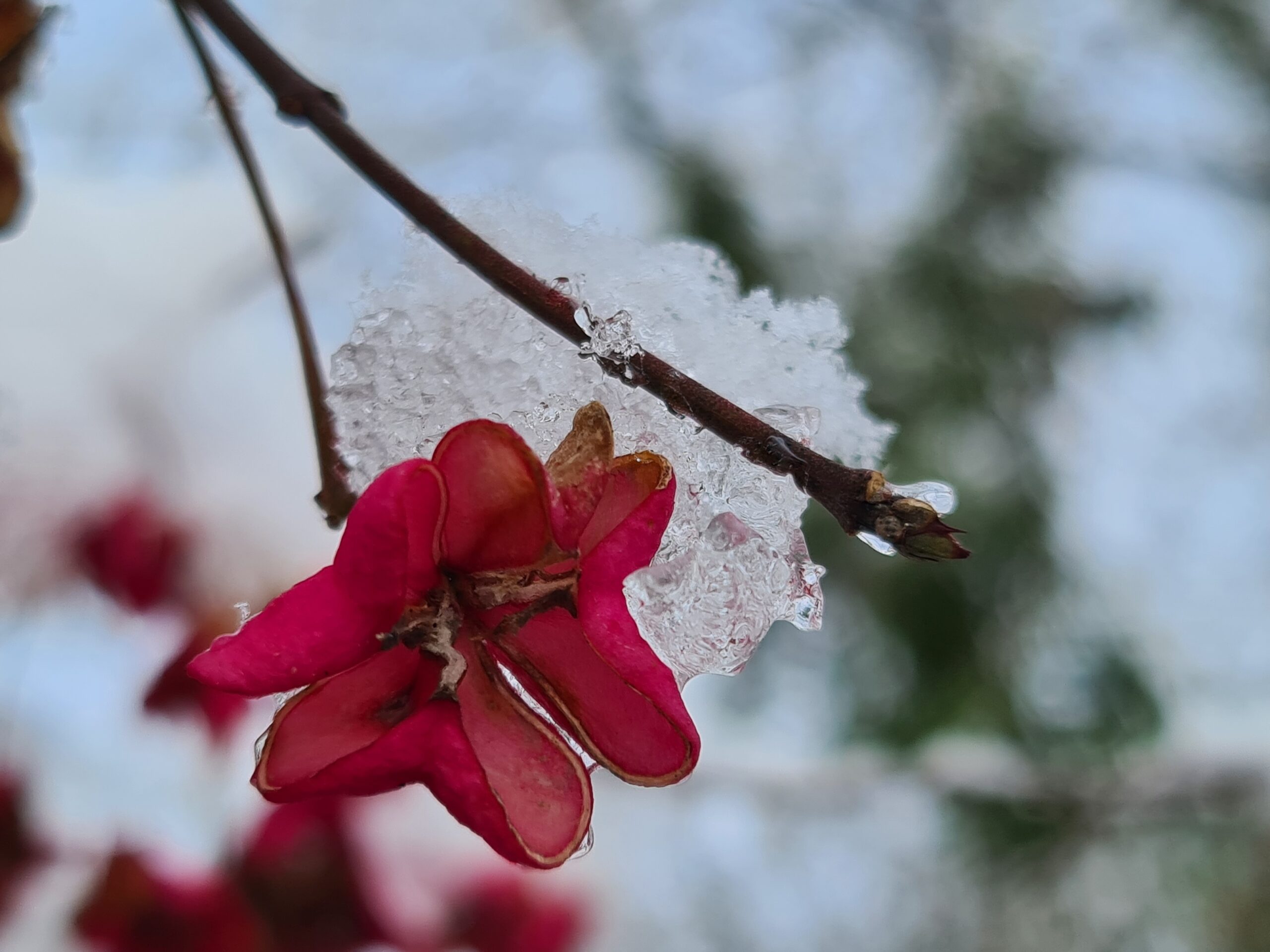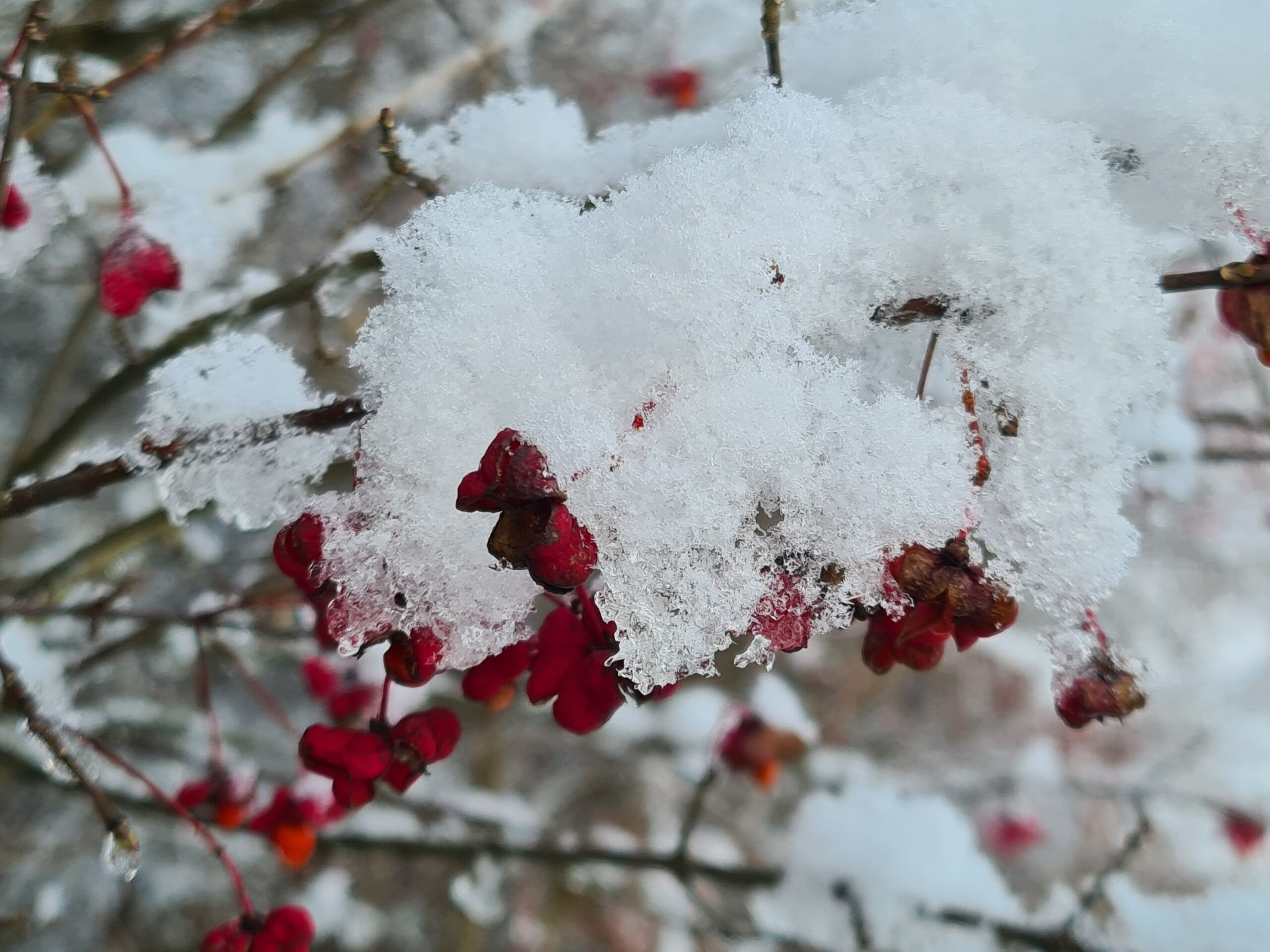 Die Erlaufschlucht, die von Purgstall aus begangen werden kann und seit 1972 als Naturdenkmal gilt, steht schon lange auf meiner Wanderliste. Ich hatte sie nicht unbedingt für den Winter im Kopf, aber da es in den letzten Tagen auch im Flachland die ersten Schneefälle gab, dachte ich mir, dass es dort mit frischem Weiß sicher auch schon sein müsste. Daher machte ich mich gestern auf den Weg nach Purgstall an der Erlauf, wo mich tatsächlich eine verschneite Landschaft erwartete. Am Schloss vorbei ging ich zum Eingang in die Schlucht und machte dabei auch schon einige Nahaufnahmen von verschneiten Zweigen und Beeren.