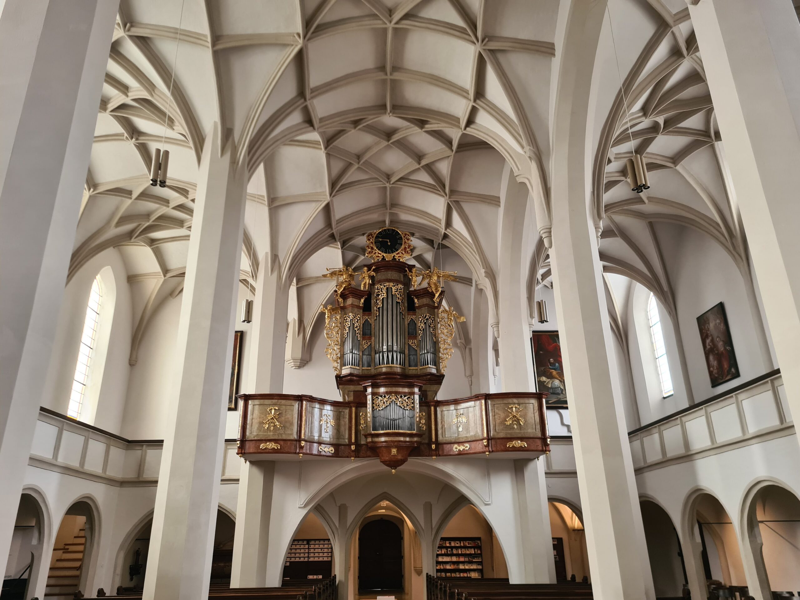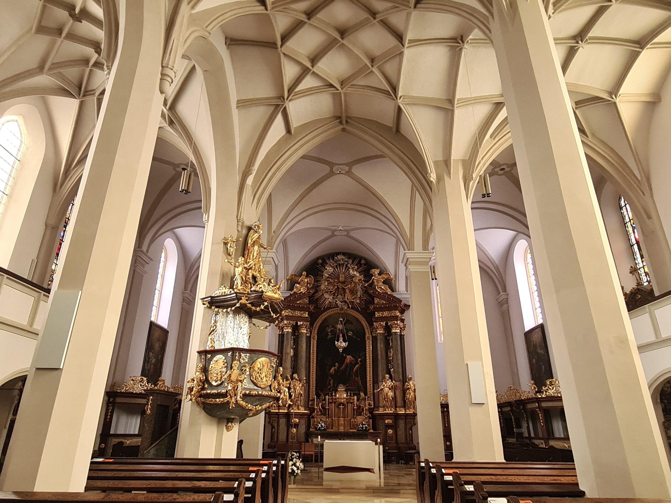 Im Frühling 2024 war ich auf dem Voralpenweg schon hier in der Gegend und hatte ganz tolle Blicke auf Scheibbs. Diesmal ging ich auf einem anderen Weg hinunter in die Stadt, wo mir leider zu viele Häuser im Weg waren. Auch die Kirche von innen konnte ich im Frühling besser fotografieren – dieses Mal war es drinnen schon ziemlich dunkel.