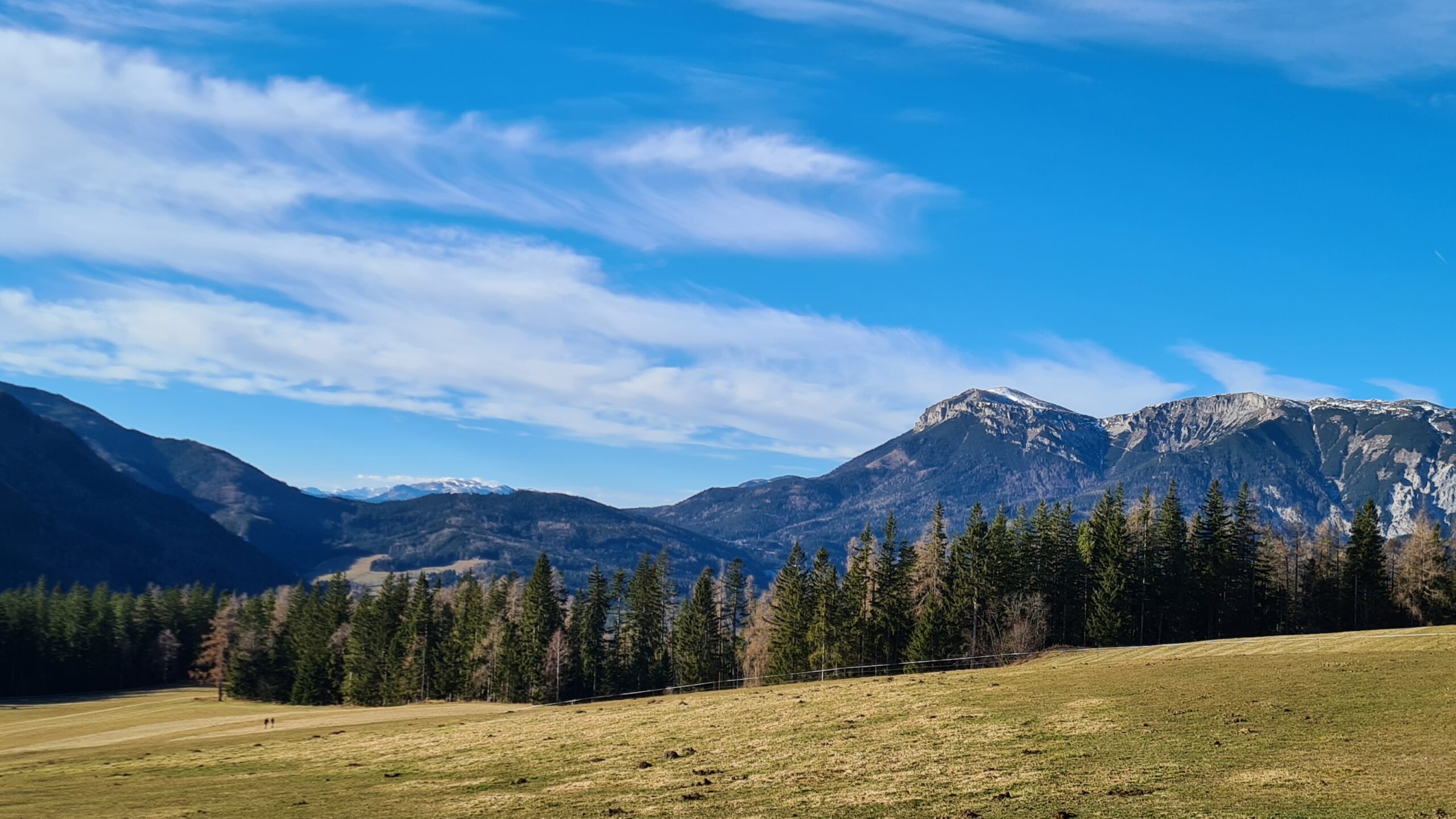 Von der Speckbacher Hütte ging ich auf einem Wiesenweg weiter Richtung Kreuzberg und hatte dabei nochmal schöne Blicke auf die Rax sowie in der Ferne auf die Hohe Veitsch.