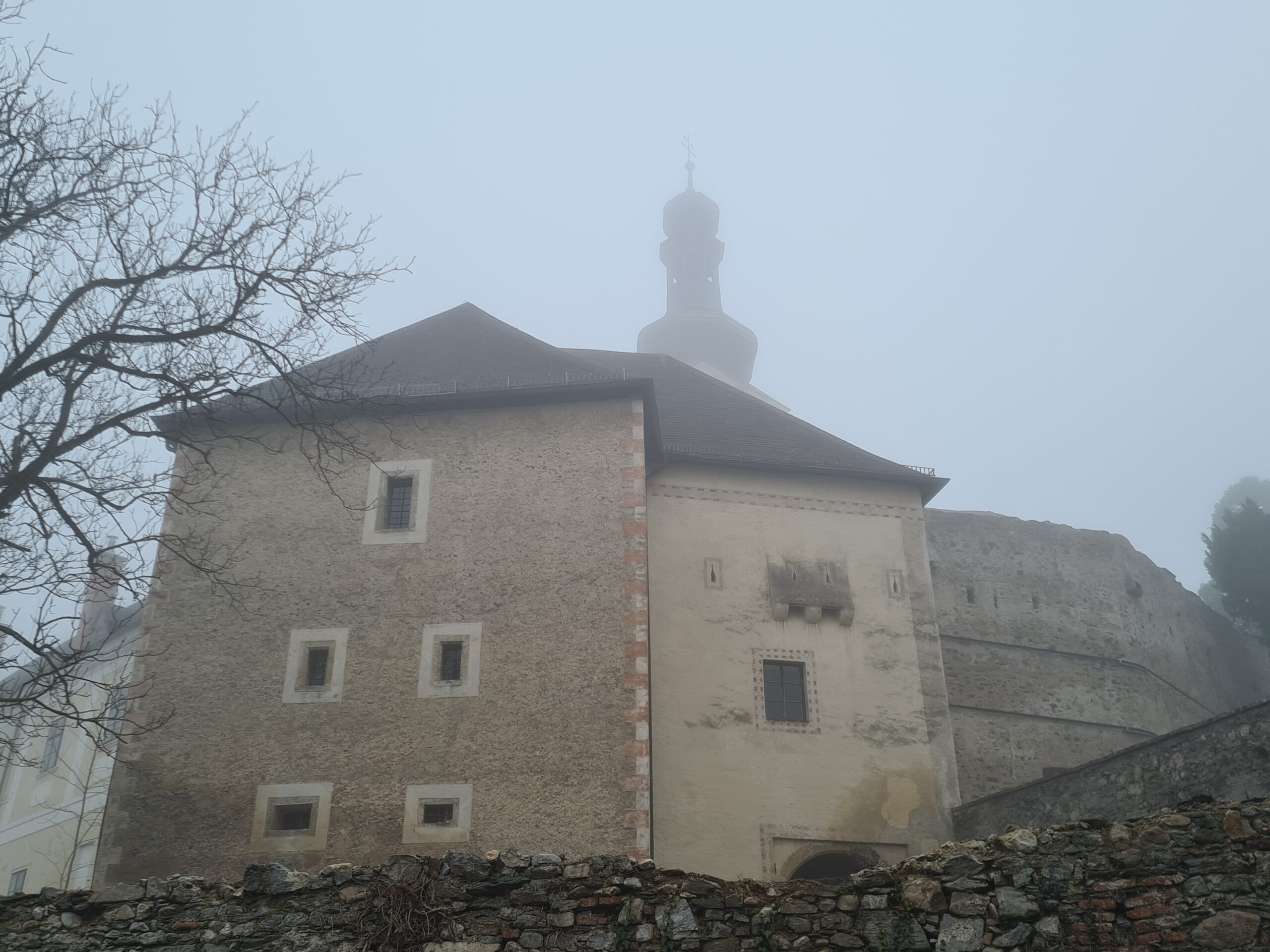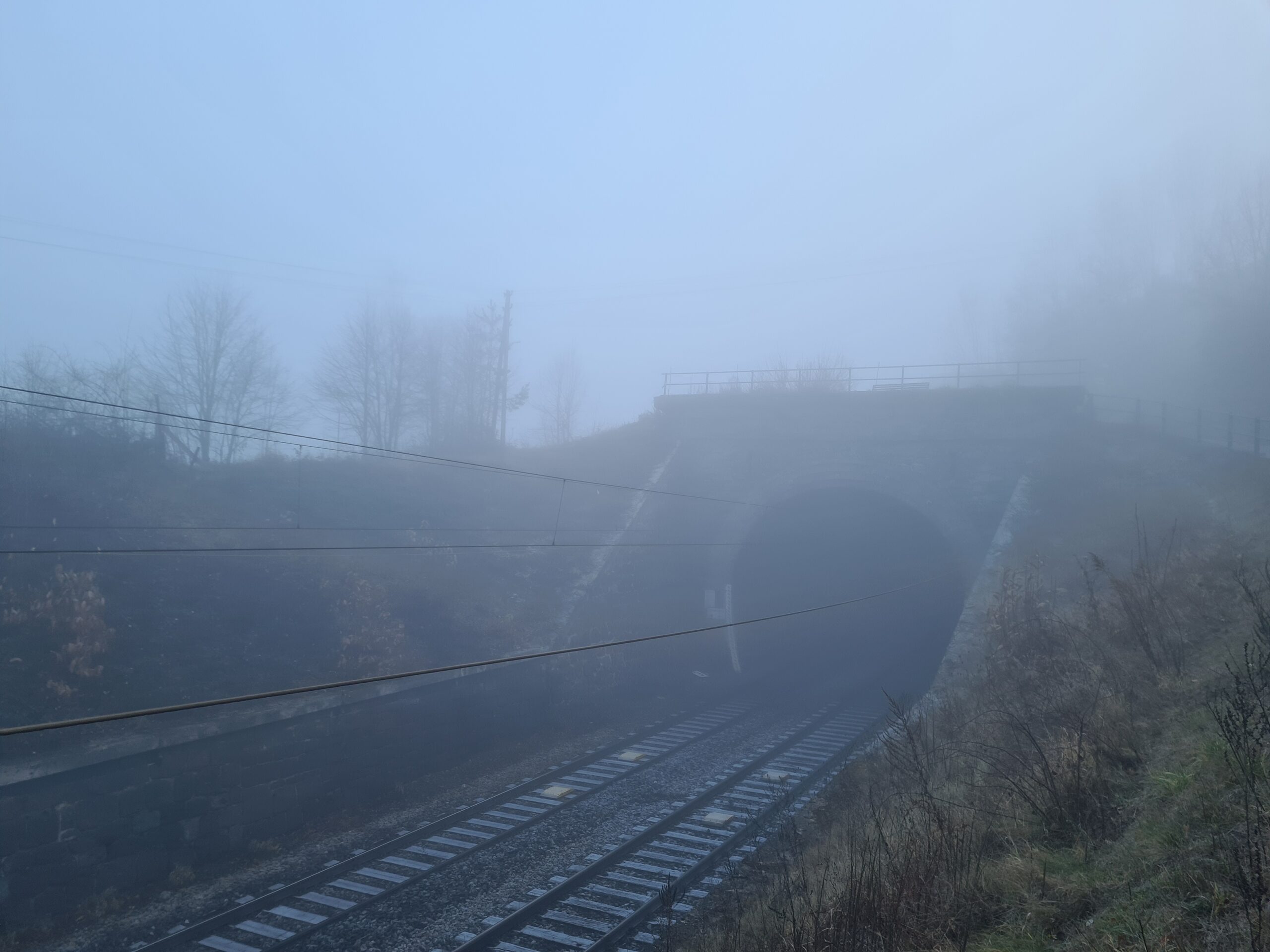 Beim Eichberg-Tunnel, auf etwa 650 Metern Höhe, tauchte ich schließlich in den Nebel ein. Praktisch von einer Minute auf die andere hatte ich fast keine Sicht mehr und es wurde sehr ungemütlich kalt.