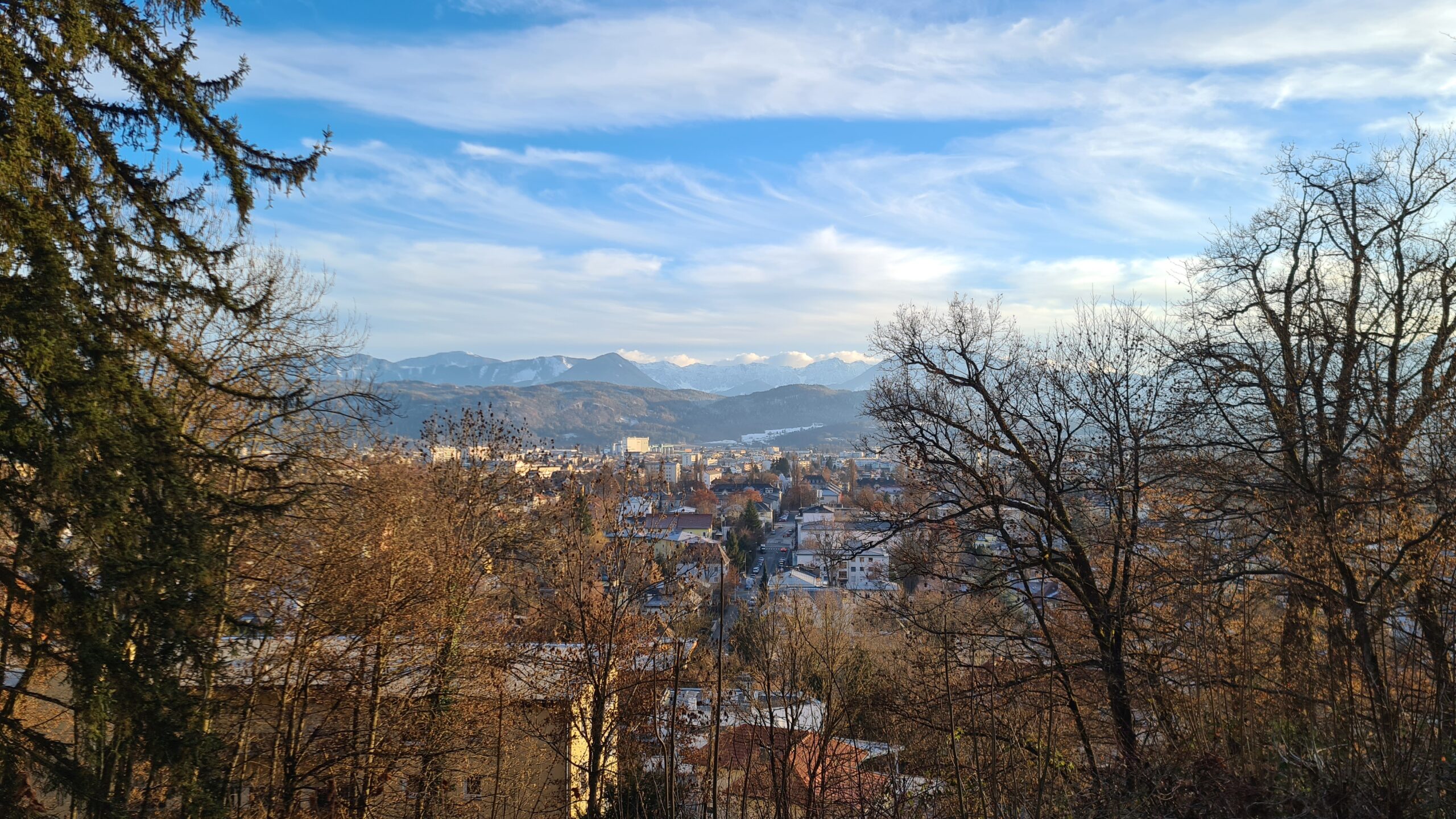 Vom Wörthersee gingen wir zunächst wieder Richtung Bahnhof West und wechselten dann auf einen Waldweg, der uns ein Stück bergauf führte. Obwohl wir nun kaum hundert Meter höher unterwegs waren, war es gleich kühler und tatsächlich ein wenig winterlich.