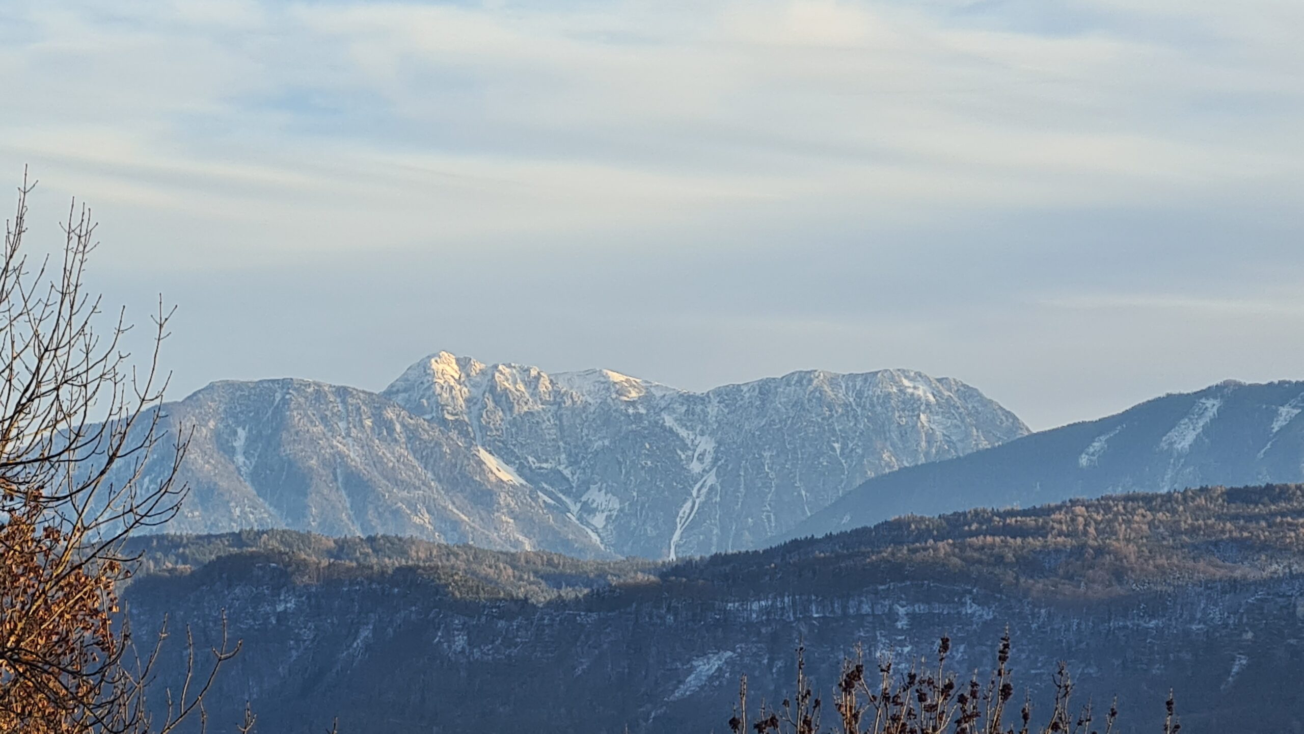 Wir wanderten auf teils breiten Wegen, teils schmalen Pfaden Richtung Osten, bis wir die Aussichtsplattform Karawankenblick erreichten. Hier hatten wir, wie der Name verspricht, einen schönen Blick auf die Karawanken, die sich südlich von Klagenfurt erheben.