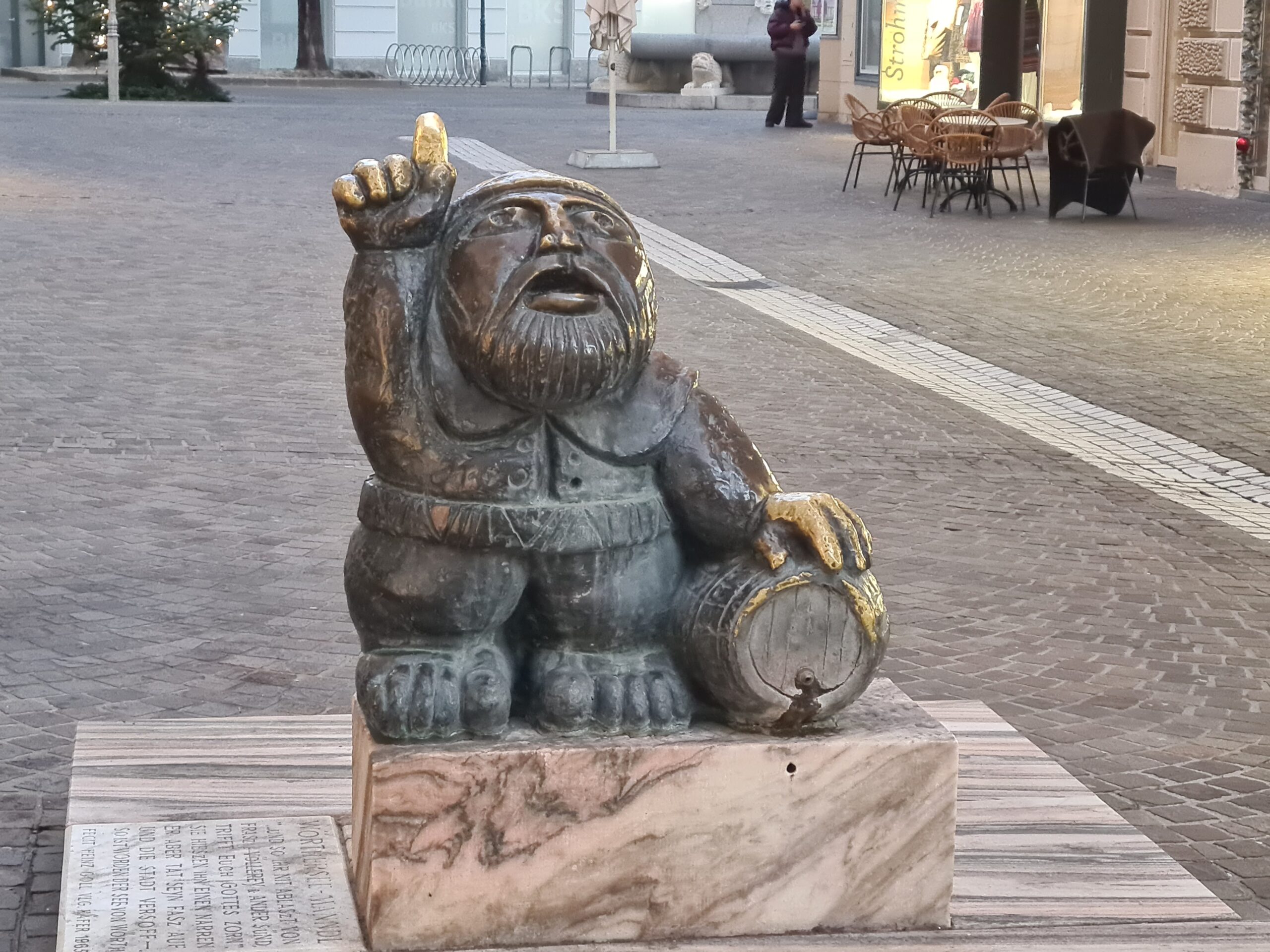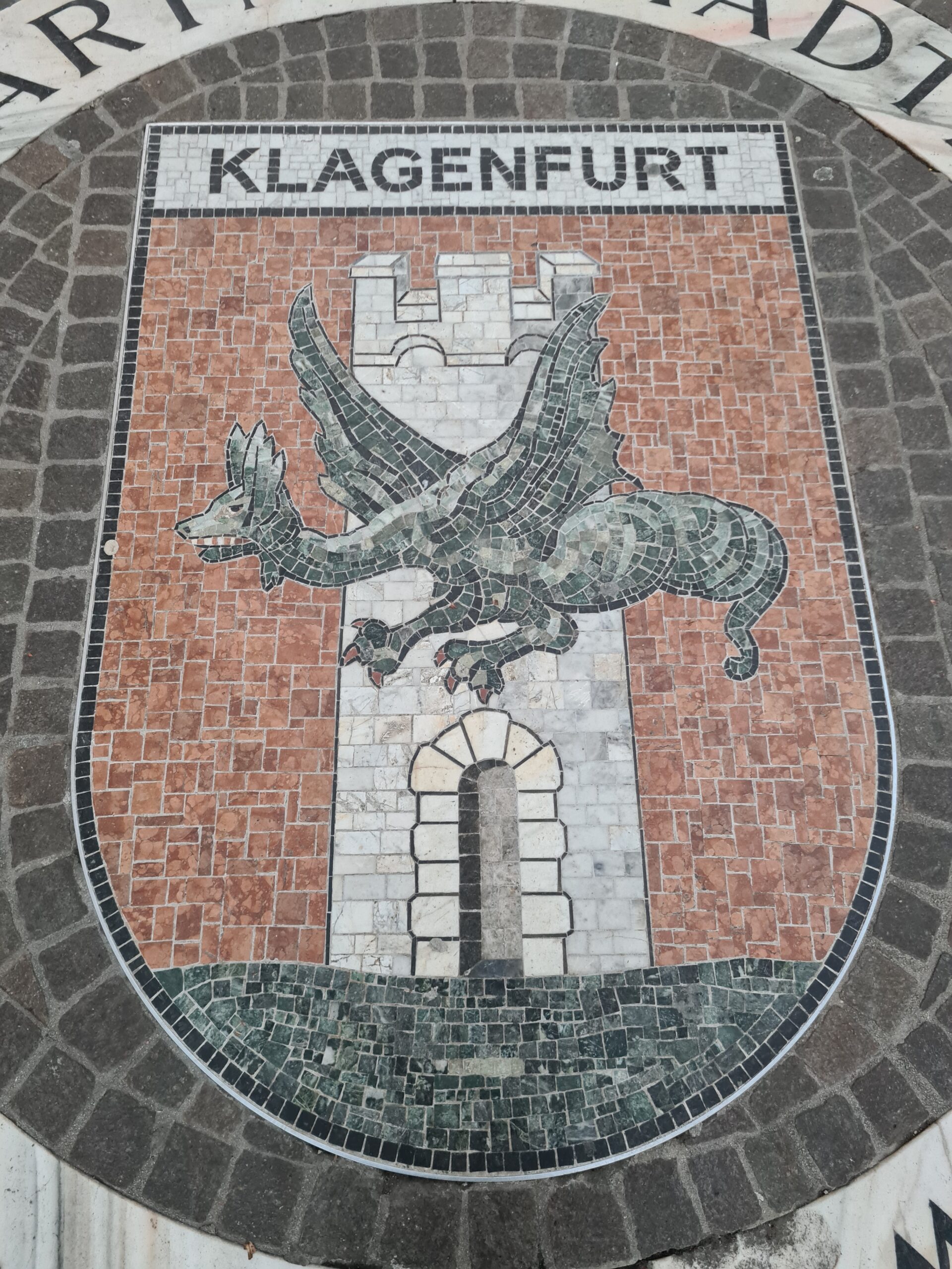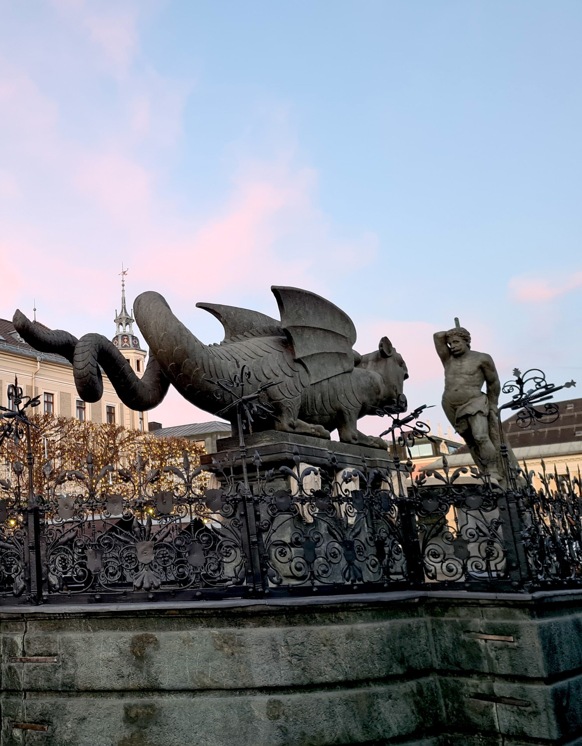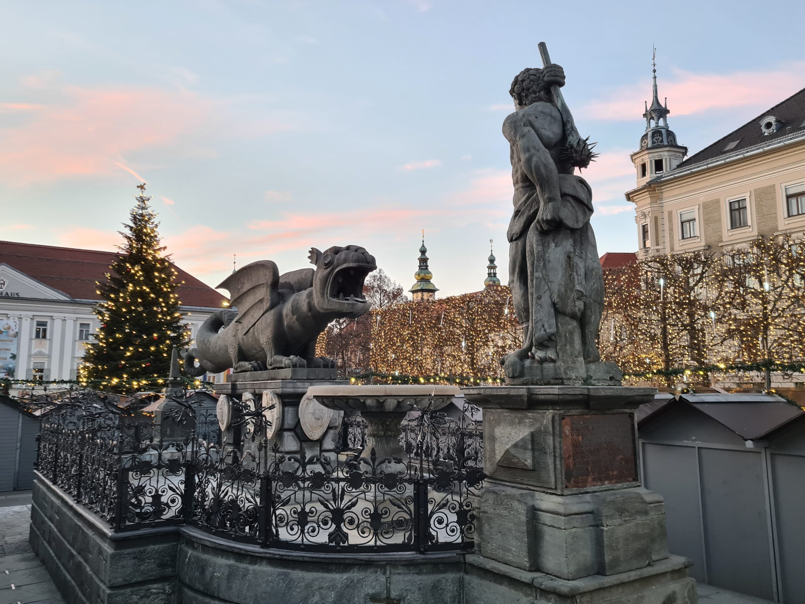 Schließlich suchten wir auf dem Neuen Platz noch das Wahrzeichen von Klagenfurt auf – den Lindwurmbrunnen. Dieser stammt aus dem späten 16. Jahrhundert und wurde aus einem Block Chloritschiefer vom Kreuzbergl gehauen. Der Lindwurm ist auch das Wappentier von Klagenfurt und geht wie das Wörtherseemandl auf eine Sage zurück.