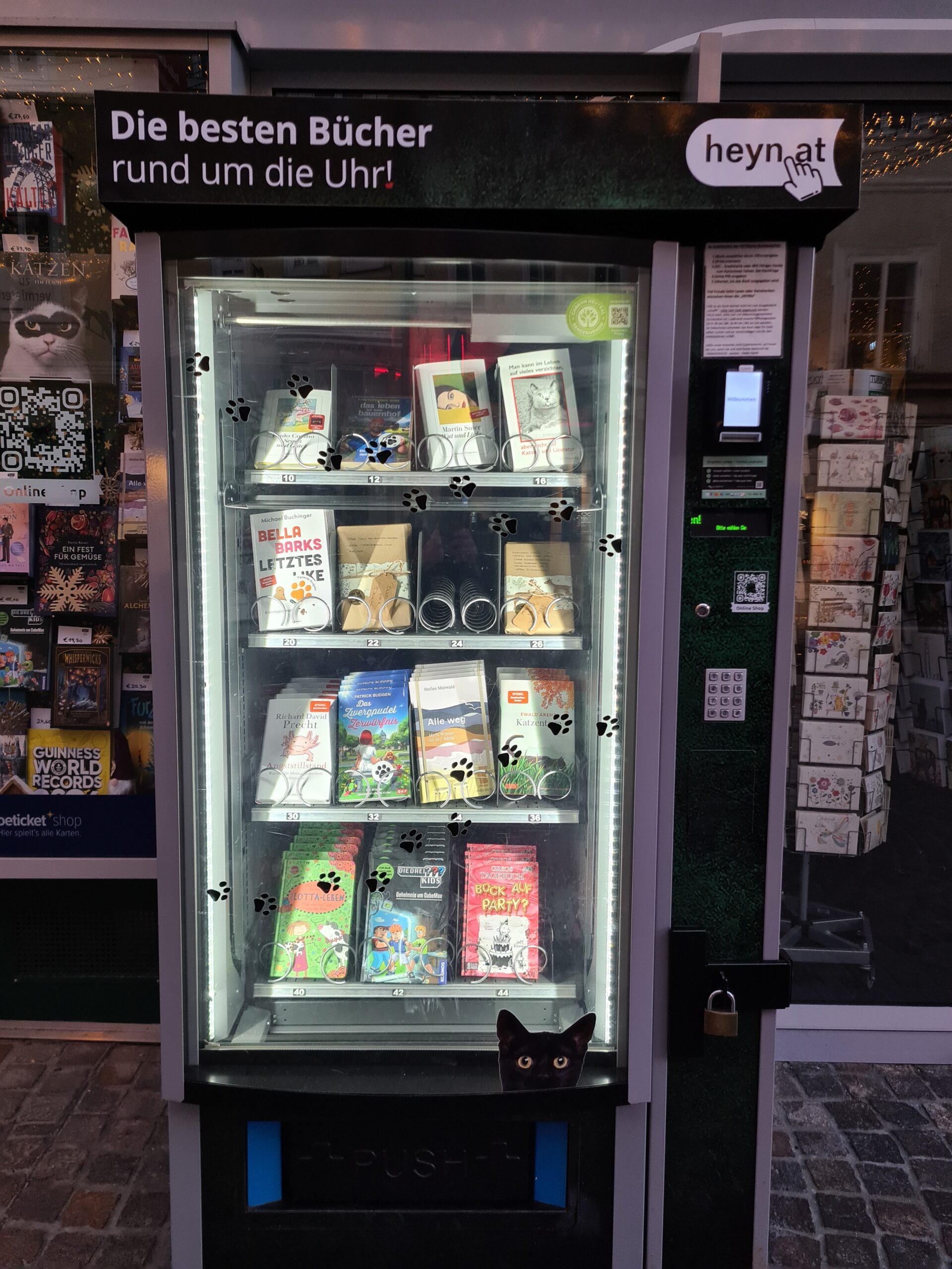 Vom Landhaus gingen wir nun zum Wörtherseemandl – einer Sagenfigur, die der Legende nach die Entstehung des Wörthersees verursacht hat. Die Bronzefigur von Heinz Goll stammt aus dem Jahr 1962. Sehr faszinierend fand ich auch den nahegelegenen Bücherautomat. Die Auswahl ist zwar nicht allzu groß, aber wenn man mitten in der Nacht Lesestoff braucht und kein E-Book lesen möchte, dann wird einem hier geholfen. Es waren sogar zwei Blind Date-Bücher dabei. 😉