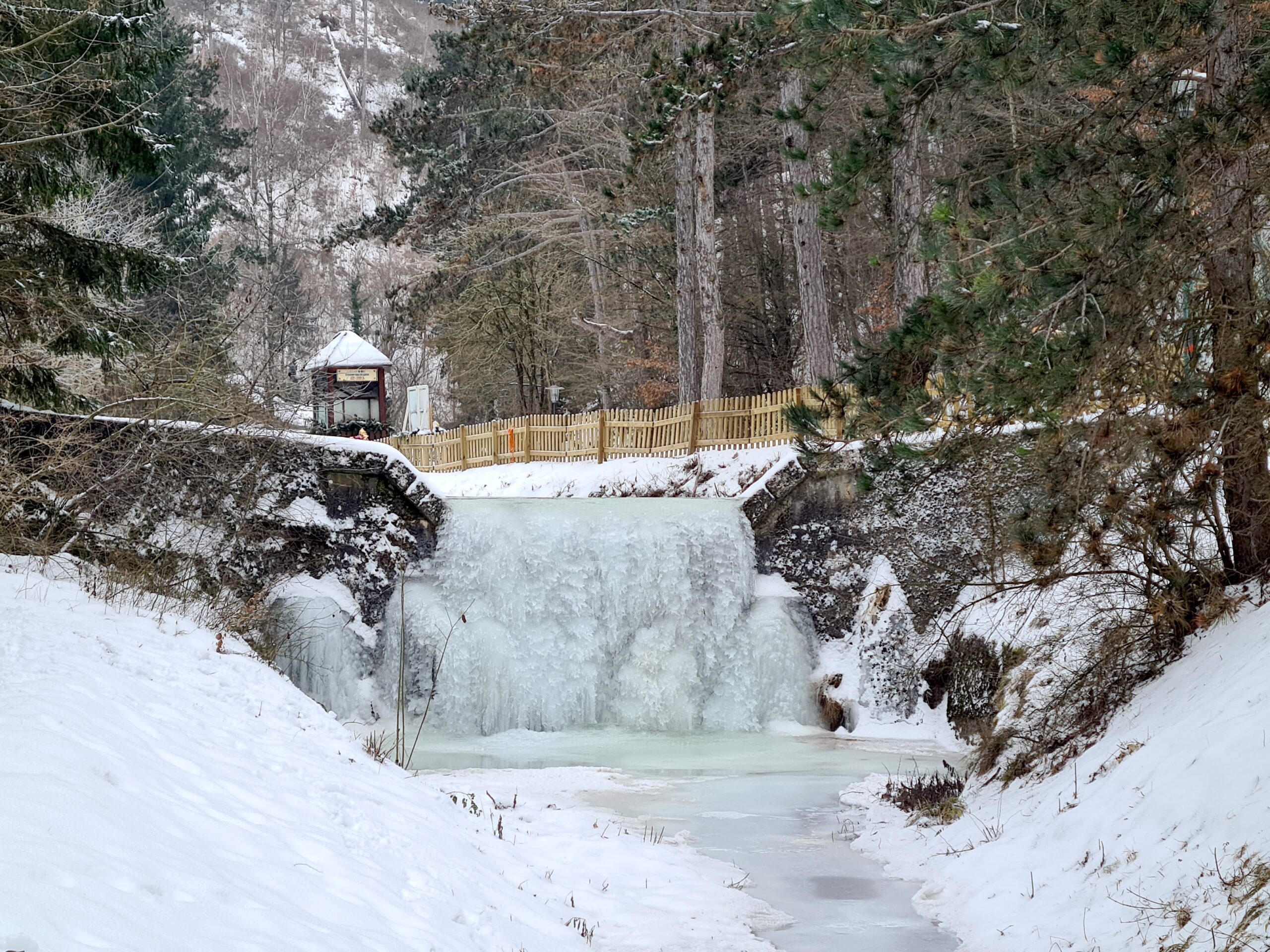 Bei eisiger Kälte ging ich vom Bahnhof Willendorf nach Würflach und folgte hier nun den Schildern zur Johannesbachklamm. Beim Eingang zur Klamm hatte ich gleich das erste Highlight: ein kleiner Wasserfall, der sonst wohl nicht sehr spektakulär wäre, jetzt aber gefroren ware. Da erträgt man die Kälte gleich lieber, wenn sie solche Ergebnisse liefert!