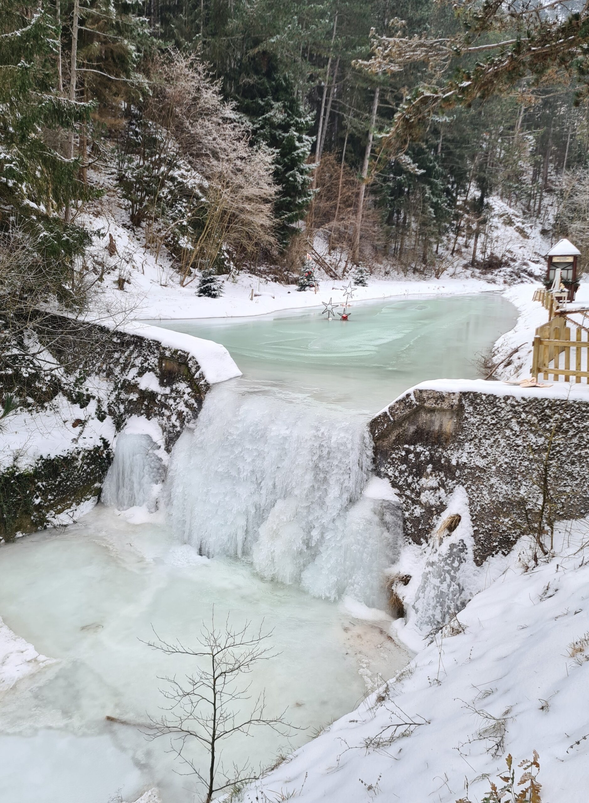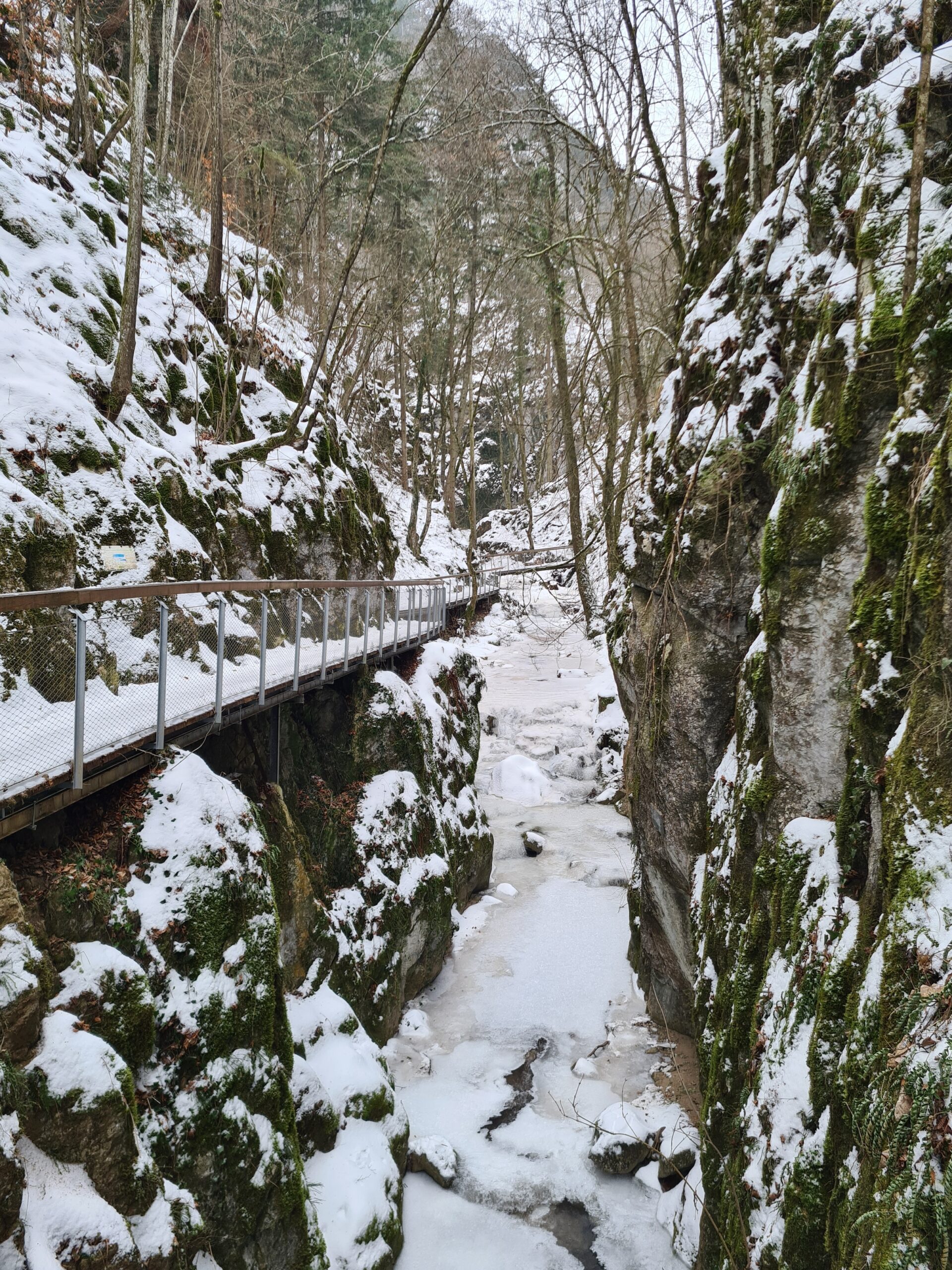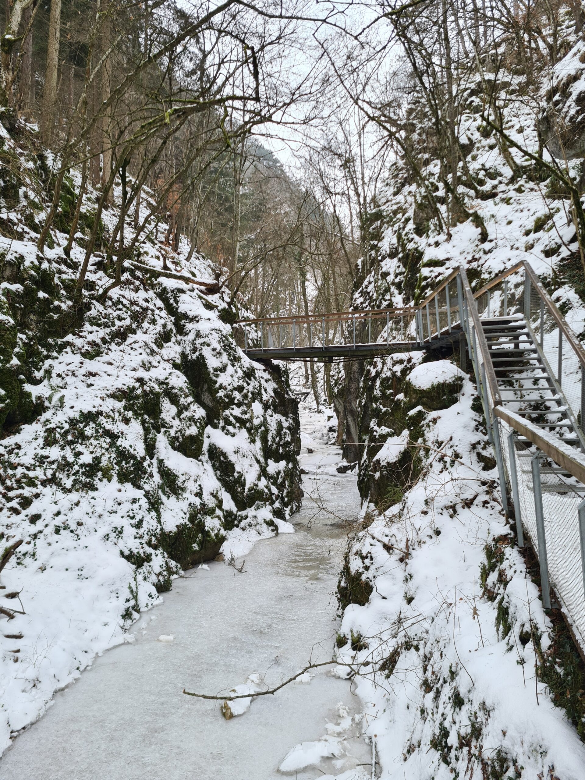 Über Stege und Brücken ging es etwa einen Kilometer lang durch die Klamm. Sonst ist diese eine beliebtes Ausflugs- und Wanderziel, aber bei diesem Wetter war gar nichts los. Dabei hatte die gefrorene Klamm ihren ganz eigenen Reiz und ich kam aus dem Fotografieren gar nicht mehr raus.