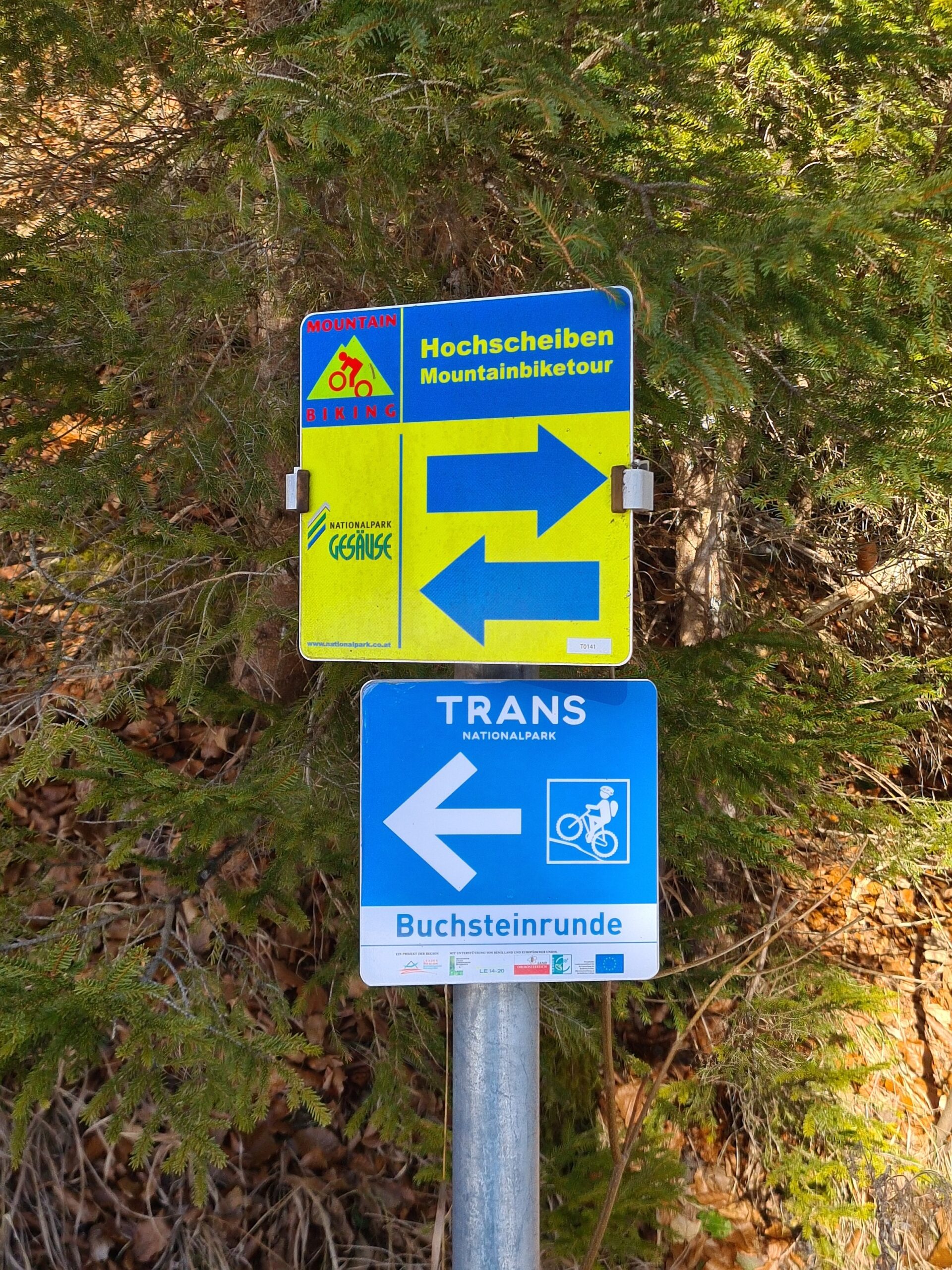 Umso weiter westlich ich kam, umso mehr löste sich der hartnäckige Nebel auf und in Hieflau begrüßte mich tatsächlich schon die Sonne. Nach einem kurzen Abstecher in den Ort hinein überquerte ich die Enns und bog links auf den Wanderweg 648 ab, der allerdings nur auf der Karte als solcher bezeichnet ist. Entsprechende Hinweisschilder kamen mir nicht unter; lediglich für die Mountainbikerunde. Solange man sich Richtung Hochscheibenalm hält, ist man aber richtig.