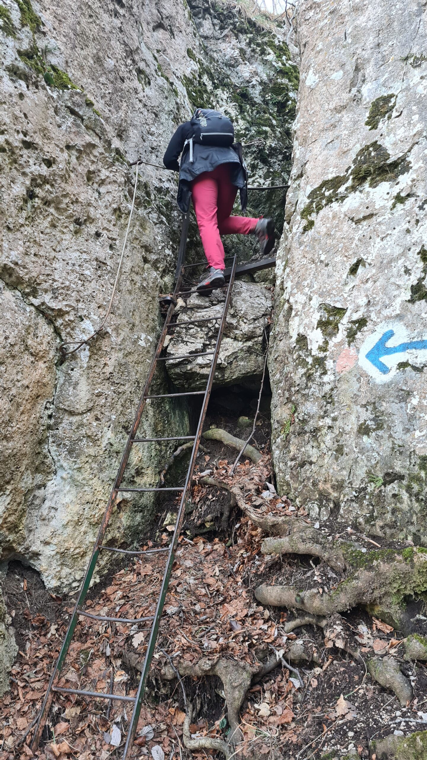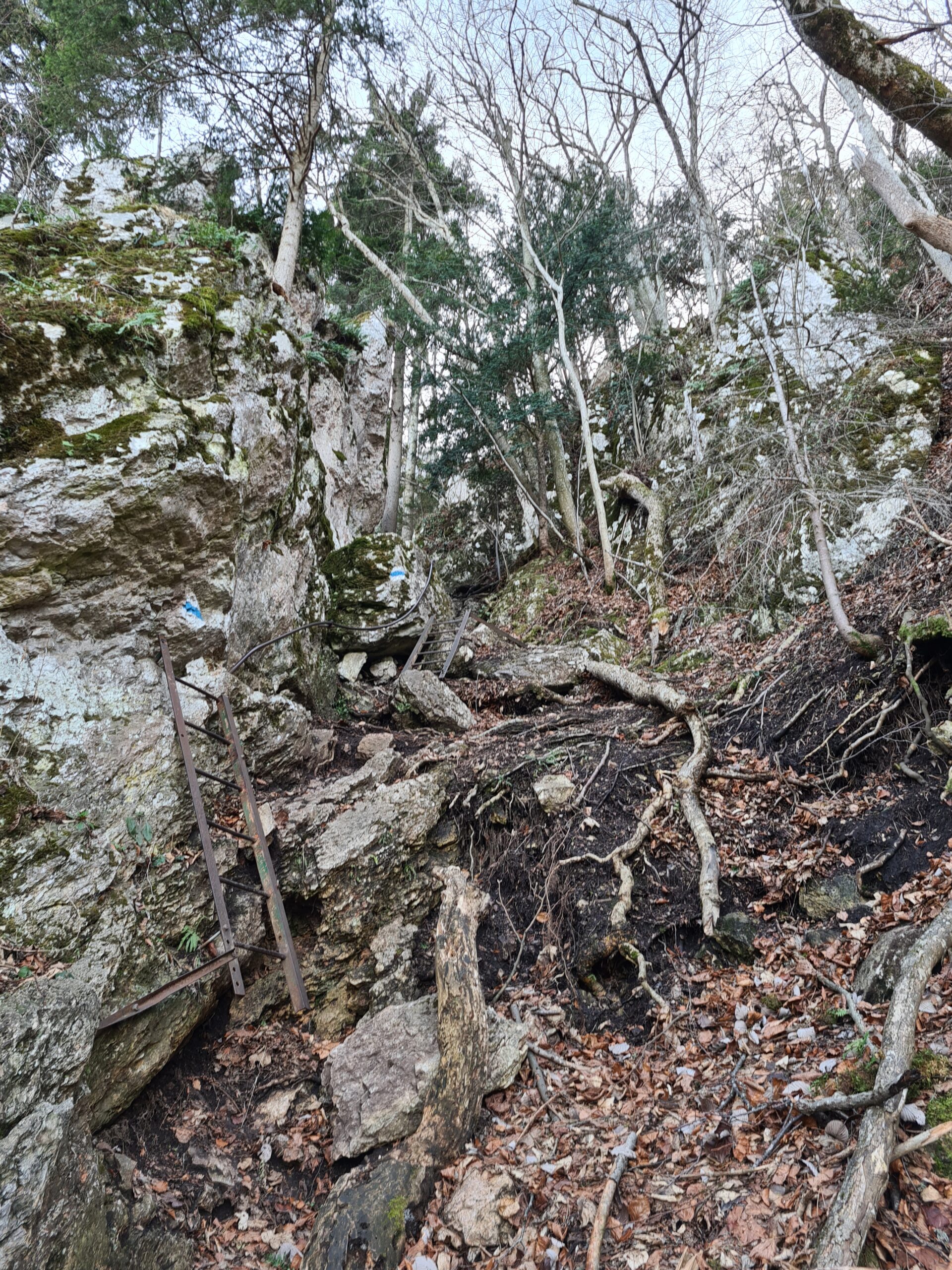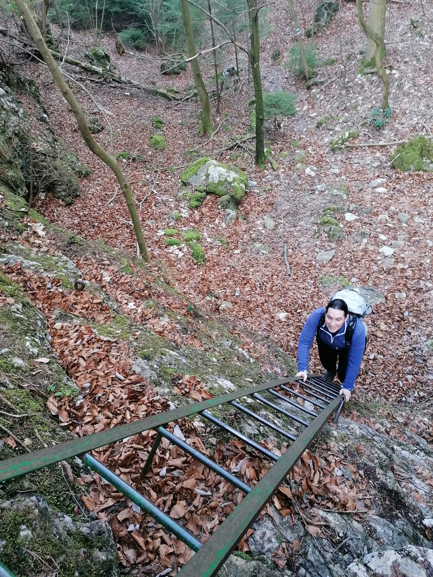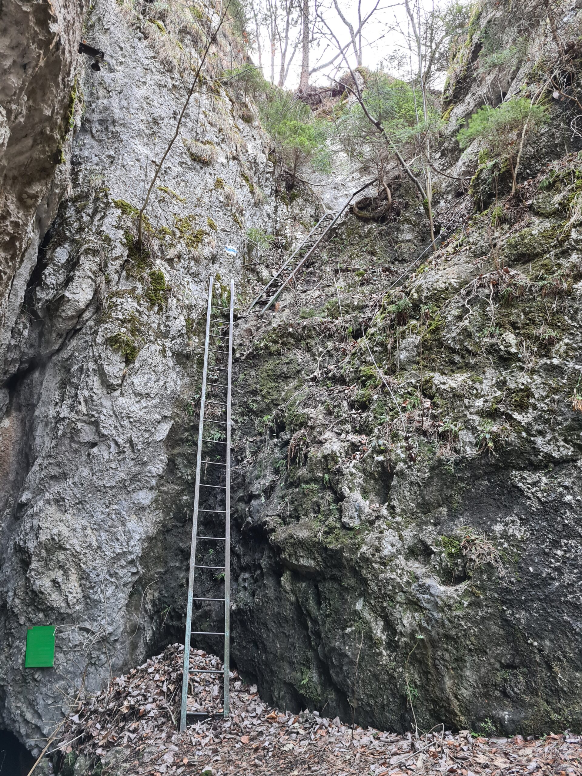 Mitte Februar 2023 nutzte ich einen besonders warmen Tag, um mit einer Freundin zu einer ausgedehnten Wanderung über die Hohe Wand aufzubrechen. Wir wählten als Aufstiegsroute den Weg durch die Große Klause und über den Waldeggersteig. Es handelt sich dabei um einen leichten Klettersteig, der allerdings ein paar auch längere Leitern beinhaltet. Ich war den Steig im Oktober 2021 schon einmal bergab gegangen. Damals hatten mich die Leitern noch etwas nervös gemacht, aber dieses Mal wusste ich schon, was mich erwartet – und bergauf waren die Leitern angenehmer als bergab. Daher hatten wir mit dem Steig keinerlei Probleme.