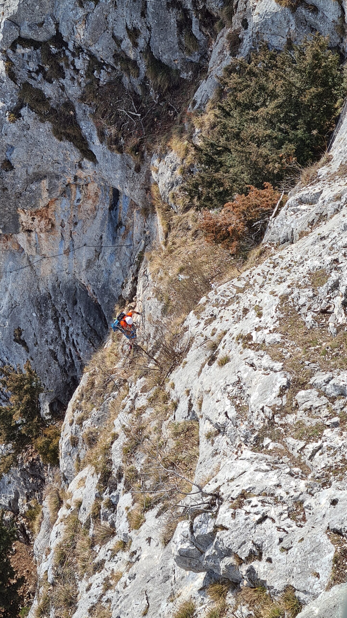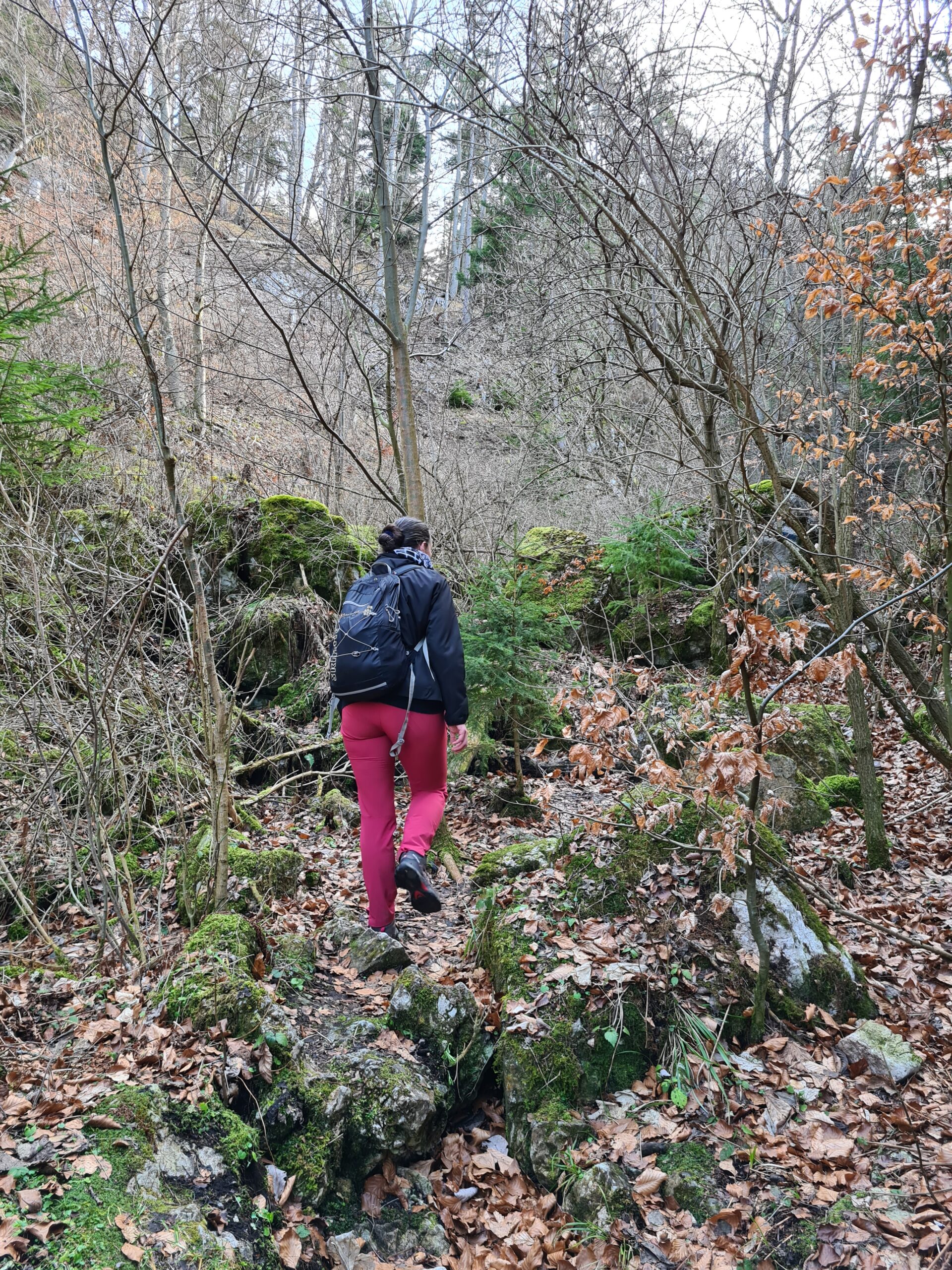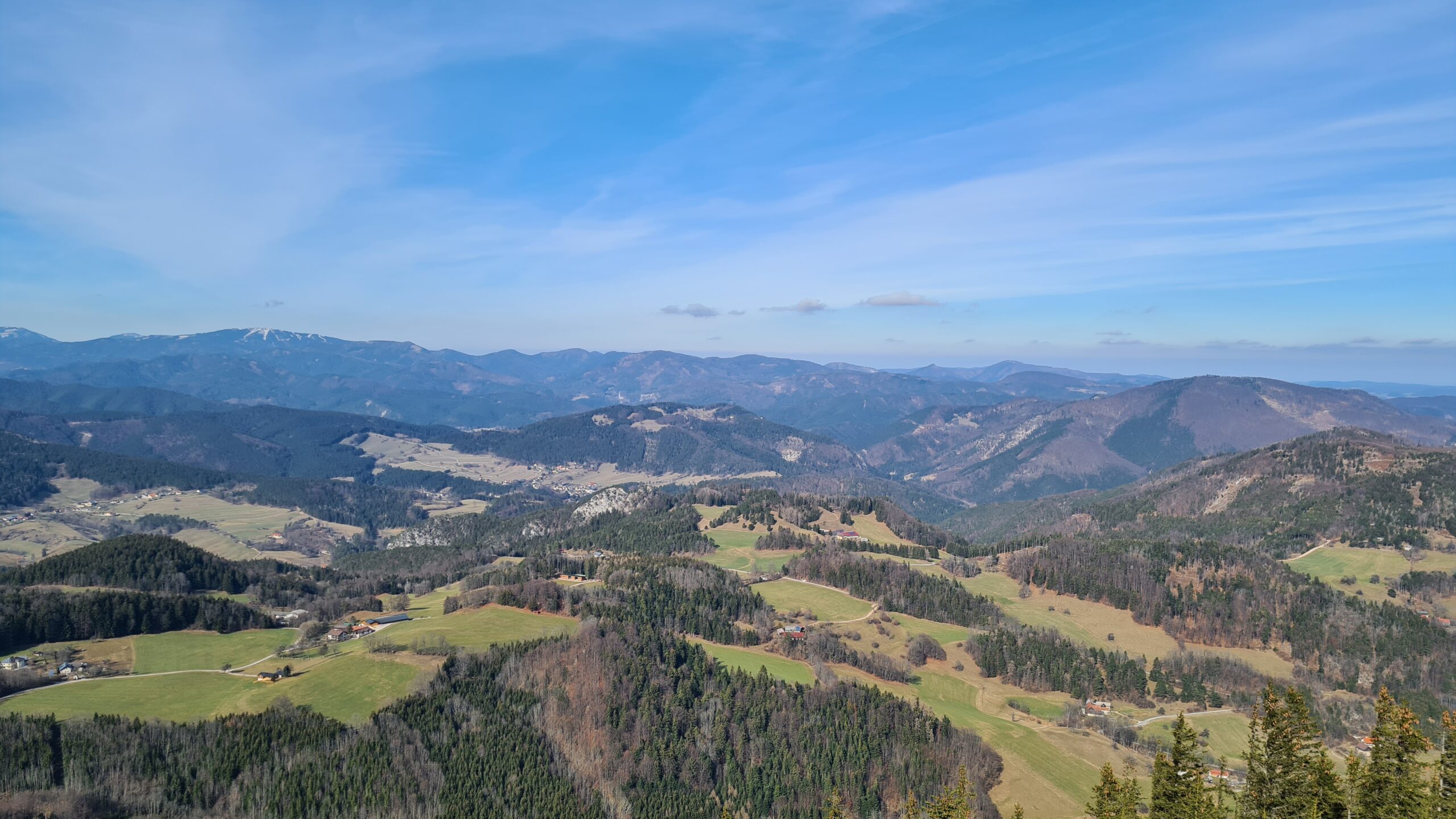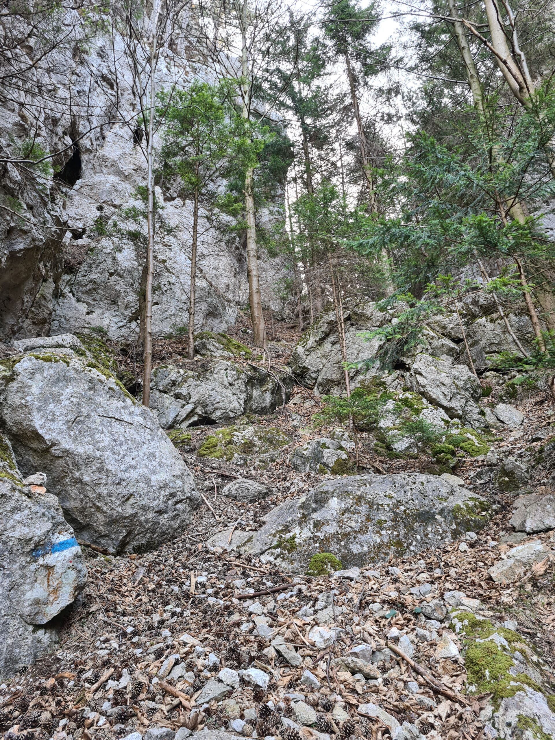 Mitte Februar 2023 nutzte ich einen besonders warmen Tag, um mit einer Freundin zu einer ausgedehnten Wanderung über die Hohe Wand aufzubrechen. Wir wählten als Aufstiegsroute den Weg durch die Große Klause und über den Waldeggersteig. Es handelt sich dabei um einen leichten Klettersteig, der allerdings ein paar auch längere Leitern beinhaltet. Ich war den Steig im Oktober 2021 schon einmal bergab gegangen. Damals hatten mich die Leitern noch etwas nervös gemacht, aber dieses Mal wusste ich schon, was mich erwartet – und bergauf waren die Leitern angenehmer als bergab. Daher hatten wir mit dem Steig keinerlei Probleme.