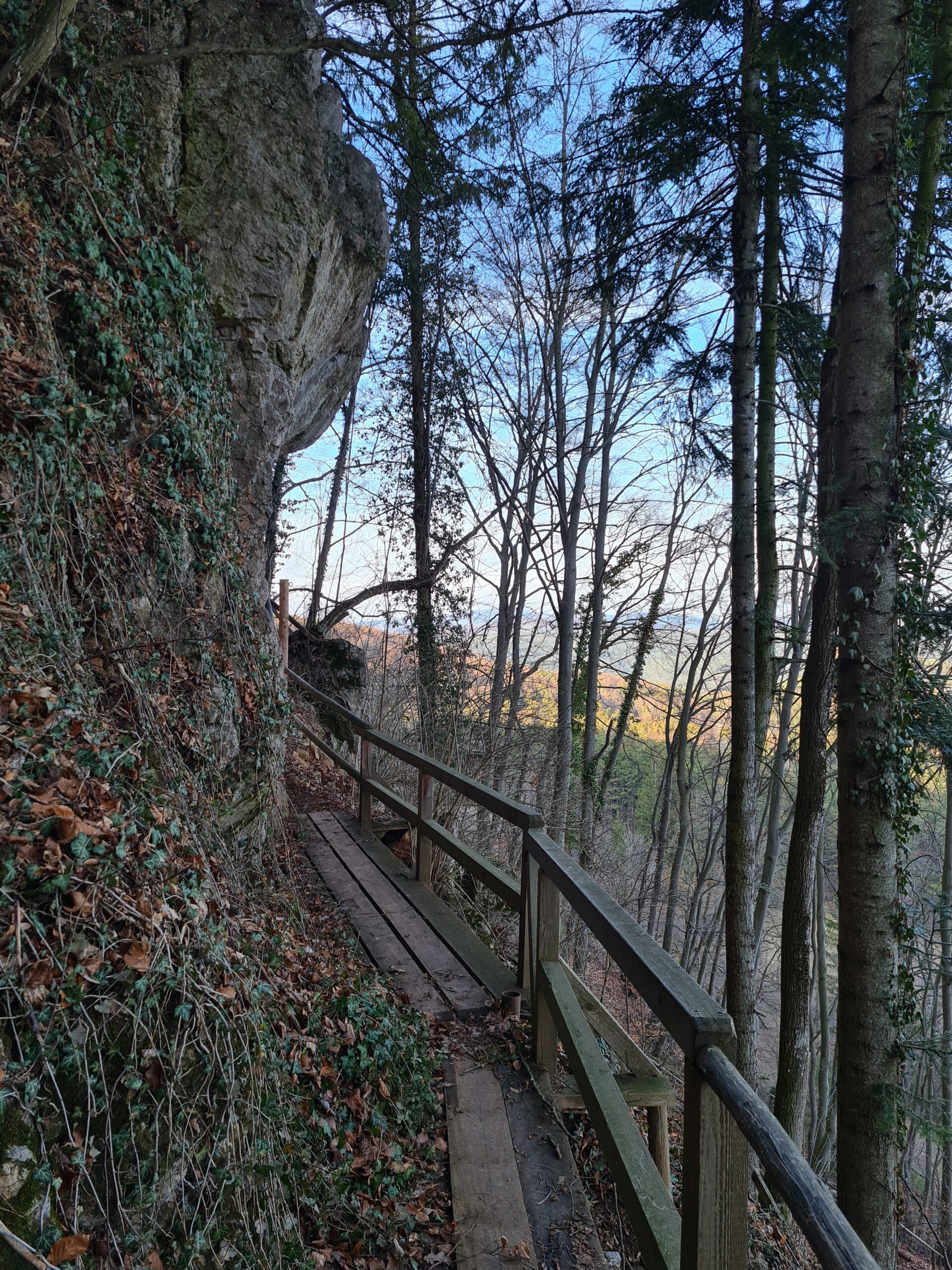 Wir passierten die Einhornhöhle, die man im Sommer auch besichtigen kann, und waren kurz darauf wieder im Flachen angekommen. Über breite Forstwege und Straßen ging es nun die letzten Kilometer bis zum Bahnhof Wopfing.