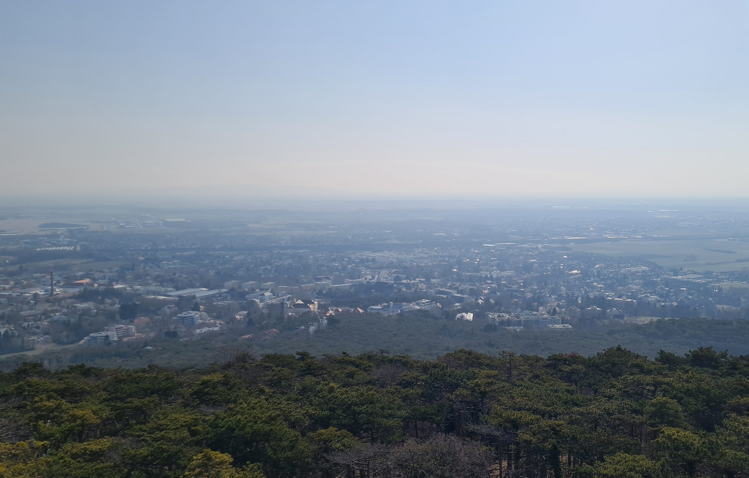 Leider war der Ausblick trotz Sonne etwas getrübt, da es ziemlich dunstig war. So war der Schneeberg lediglich als schwache Andeutung in der Ferne zu erkennen.