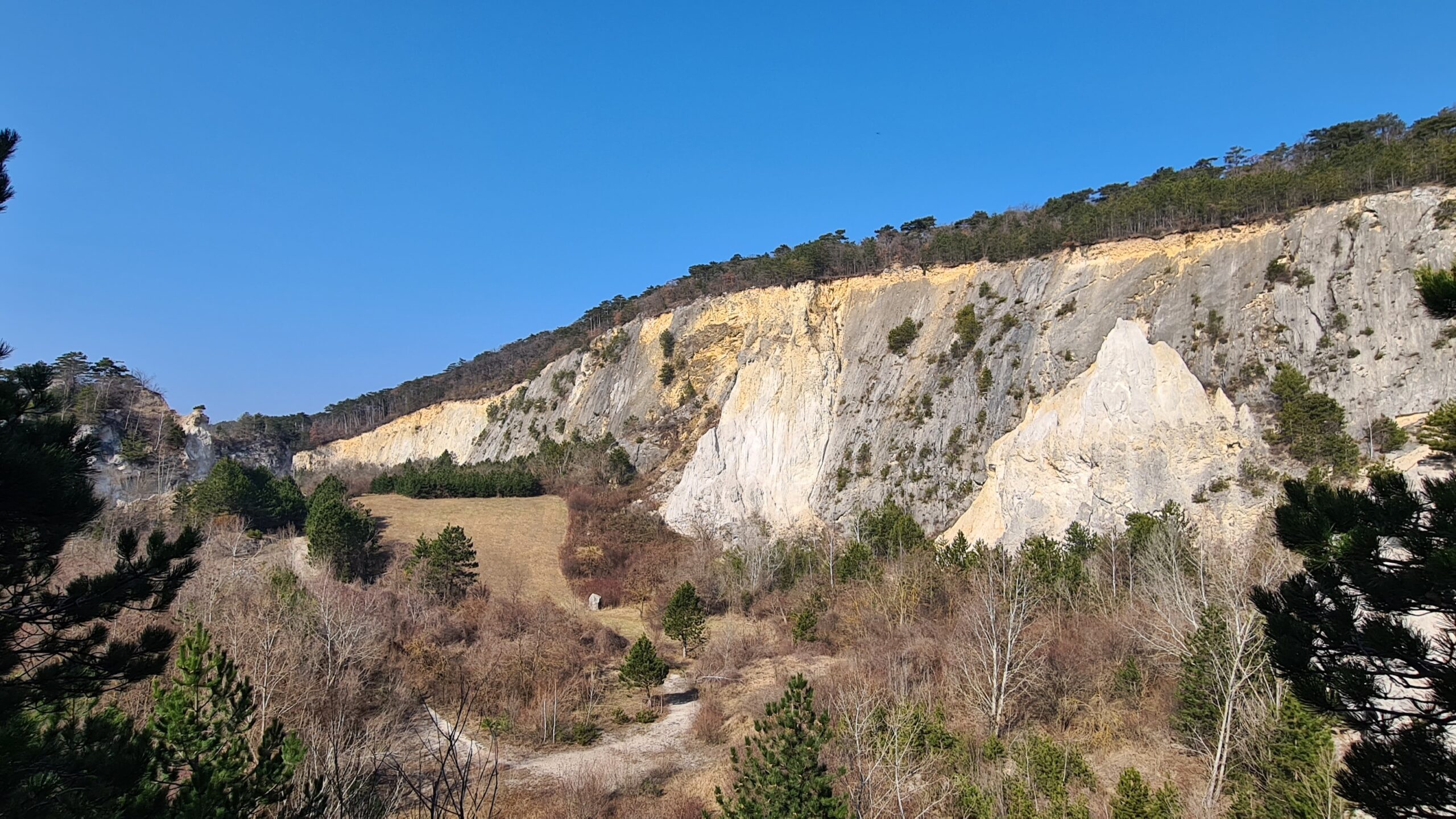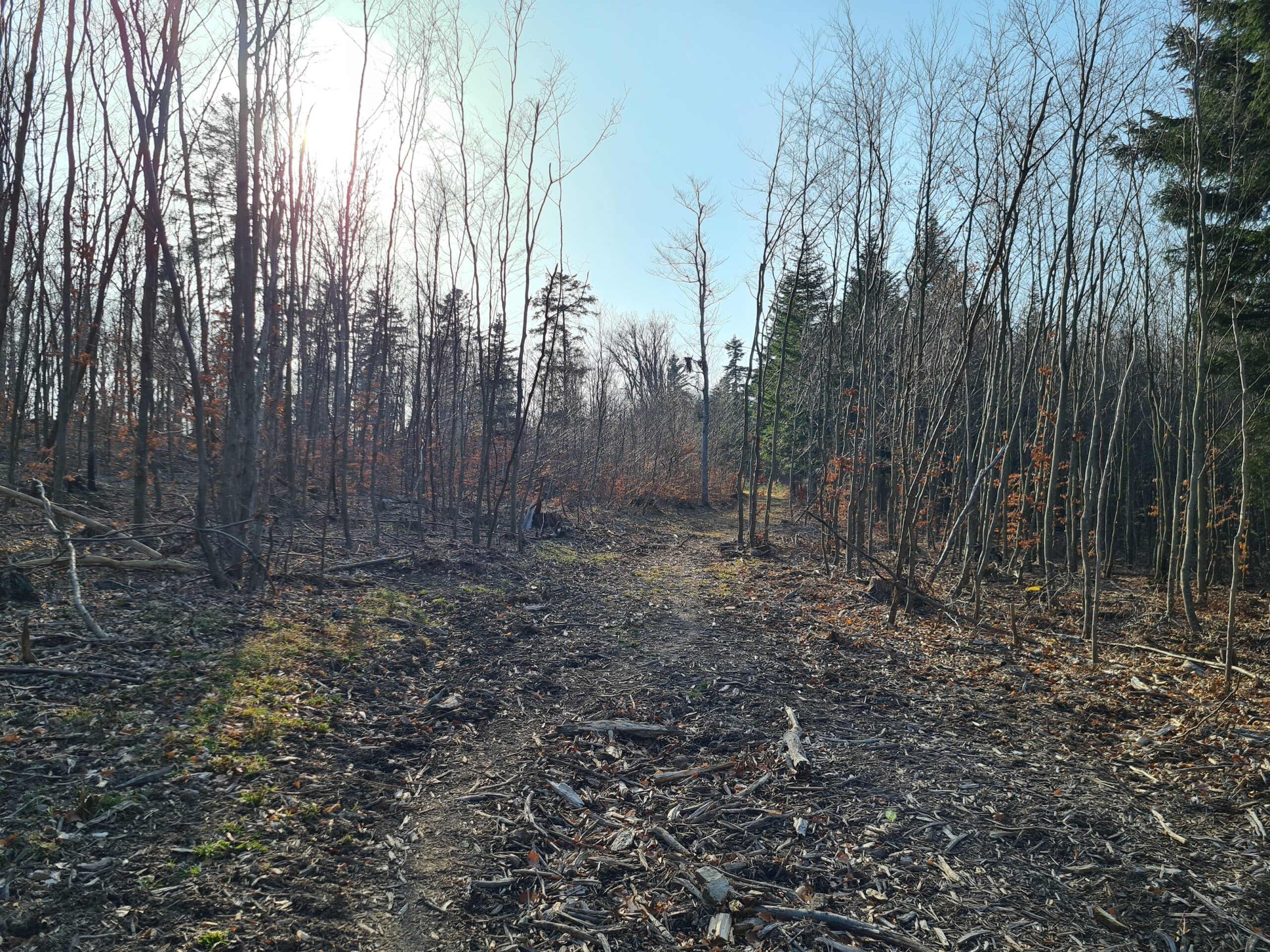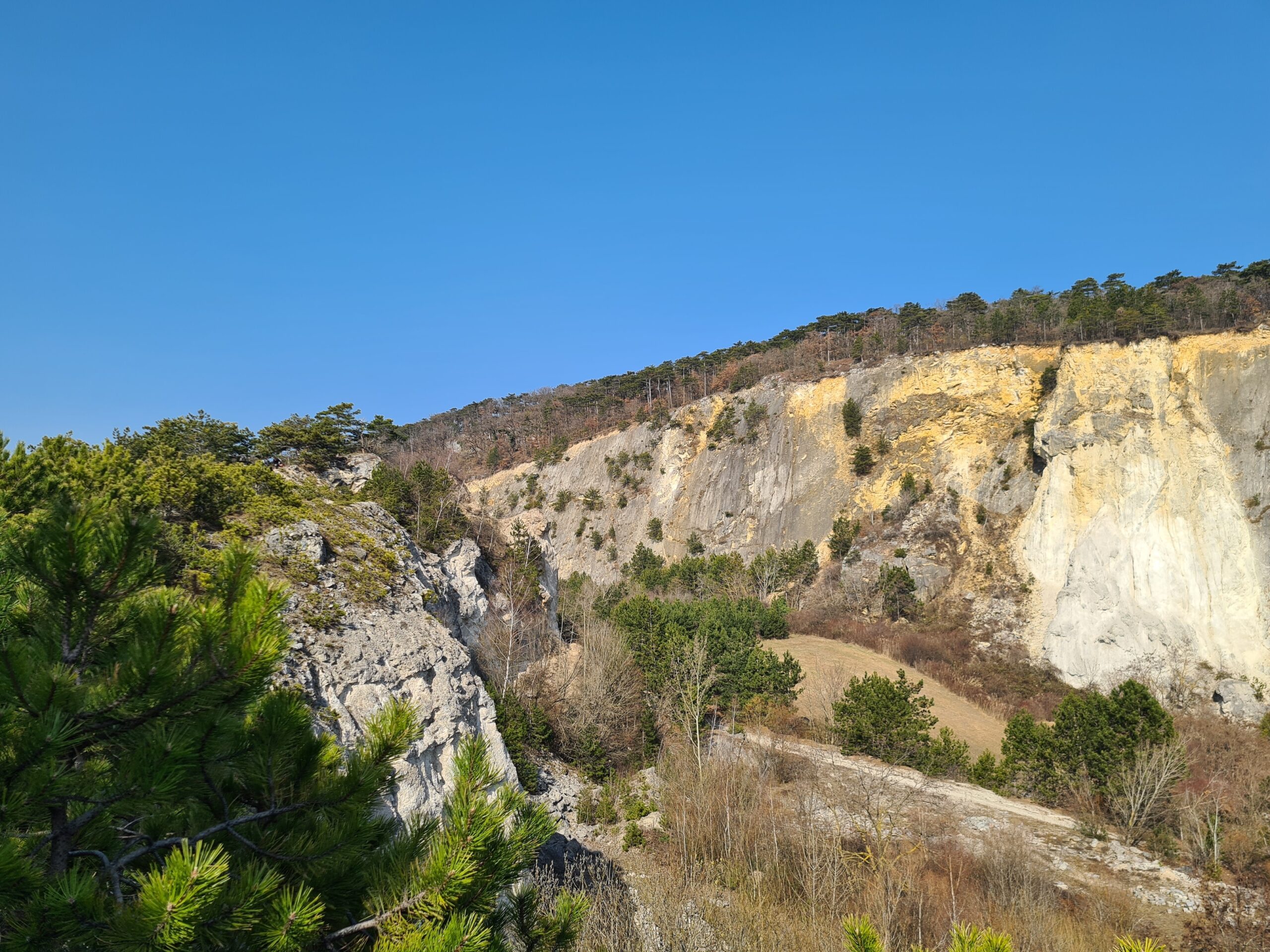 Das Schutzhaus am Harzberg hatte auch geöffnet, aber da es für eine Mittagspause noch zu früh war und ich eh meine eigene Jause mit dabei hatte, ging ich direkt weiter. Kleine Pfade führten mich zum Harzberg-Steinbruch, der seit vielen Jahren stillgelegt ist, aber einige beeindruckende Blicke bietet.