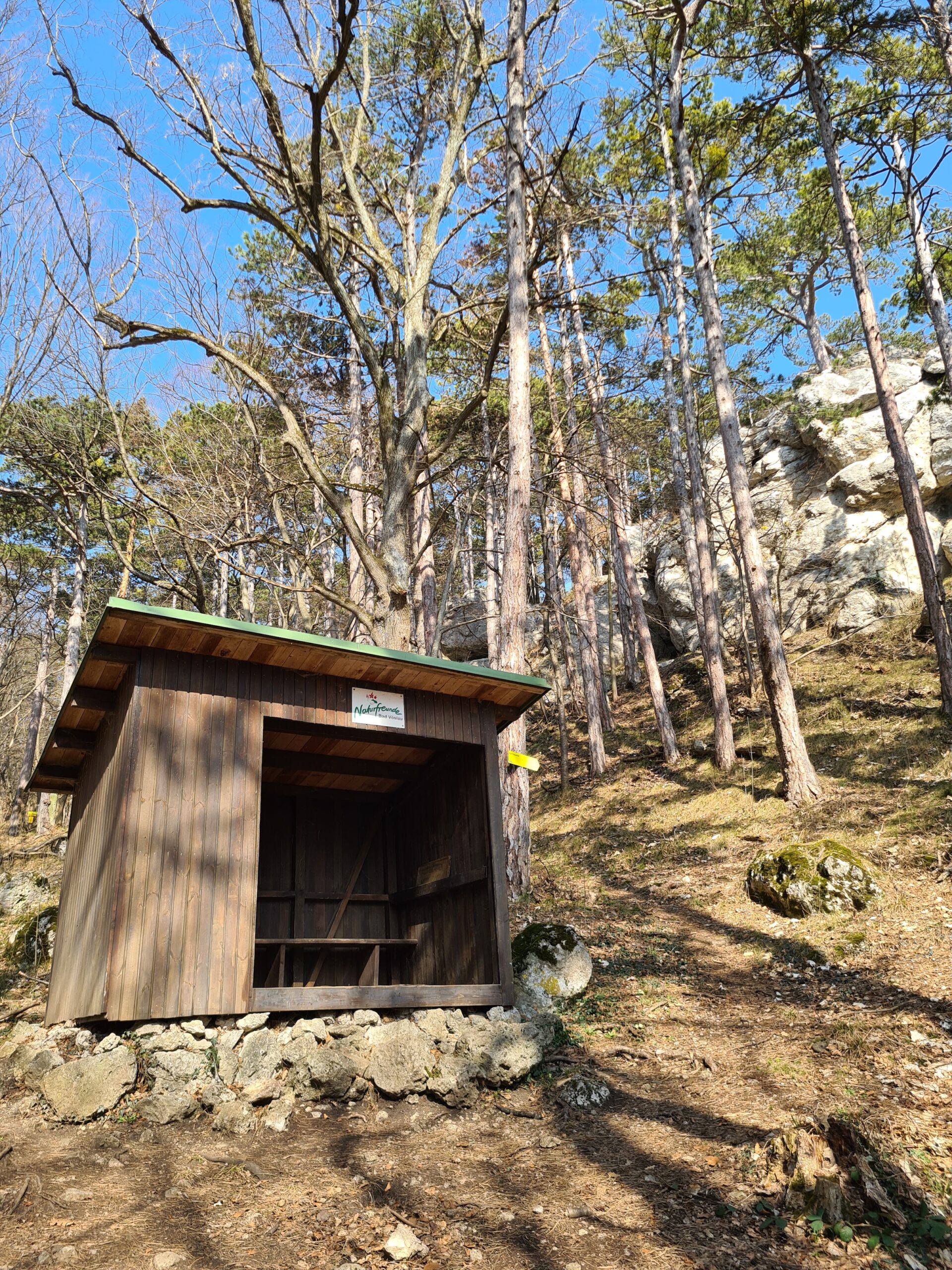 Auf kleinen Pfaden ging es weiter bergauf und bergab durch den Wald. Ich kam an einer kleinen Schutzhütte vorbei und folgte den Schildern Richtung Vöslauer Hütte.