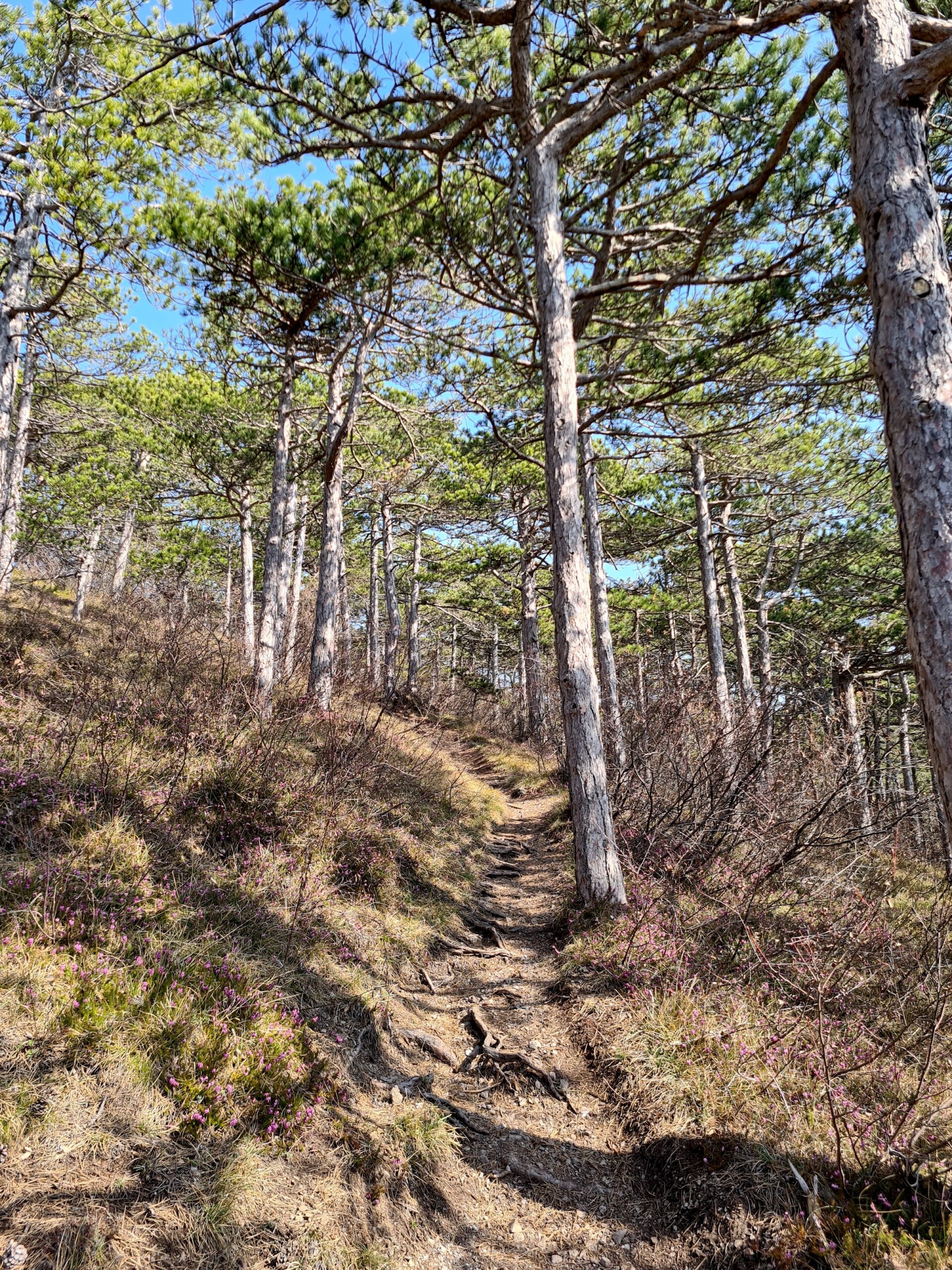 Die Wälder hier sind eine schöne Wandergegend für den beginnenden Frühling, da es dank der zahlreichen Föhren auch einiges Grün nebst kahlen Ästen gibt. Und ich konnte mich auch schon an überraschend vielen Frühlungsblumen erfreuen.