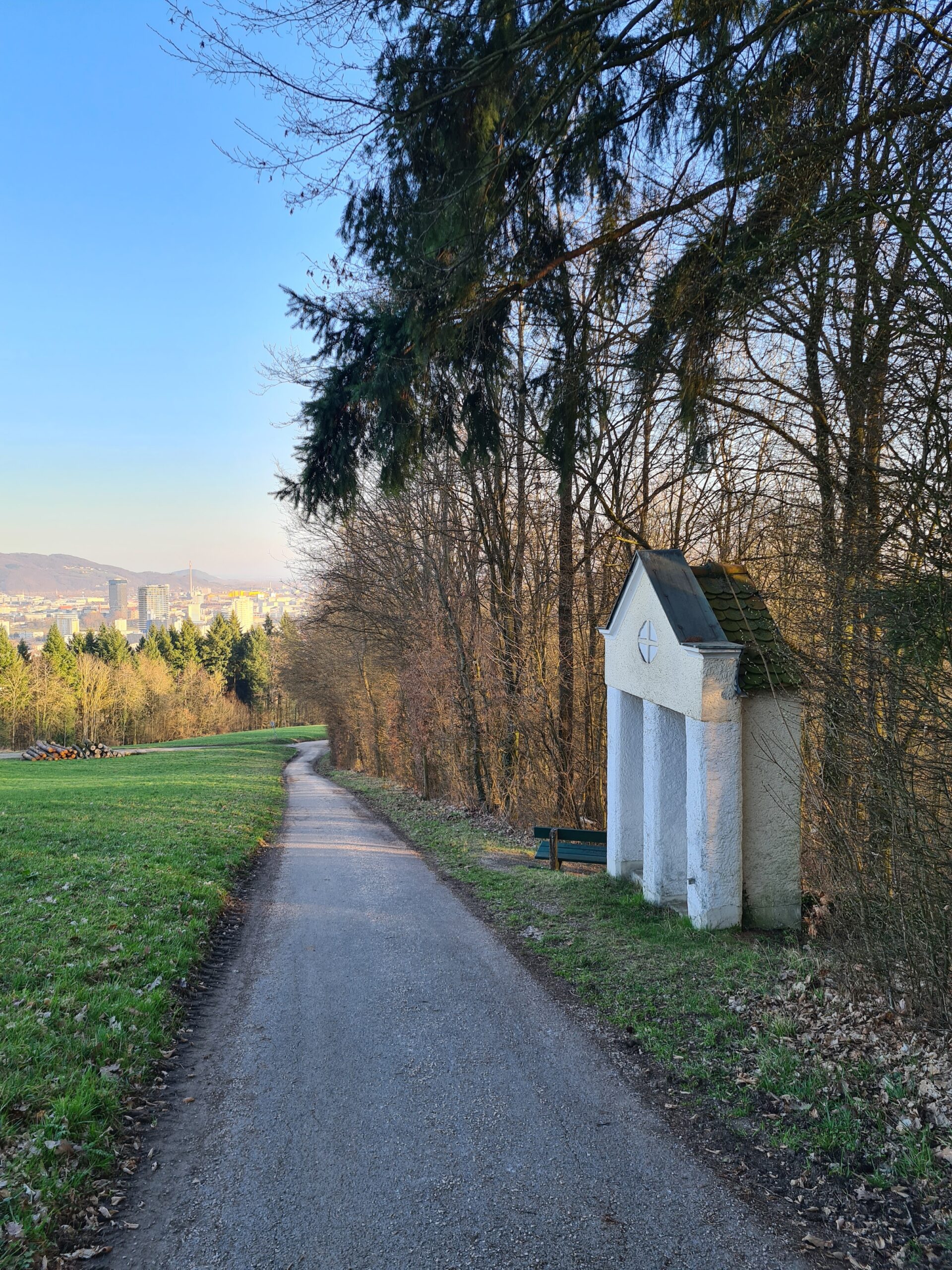 Am Kreuzweg entlang ging ich nun hinter nach Linz Urfahr und kam dabei an einem weiteren Turm und am bischöflichen Gymnasium Petrinum vorbei.