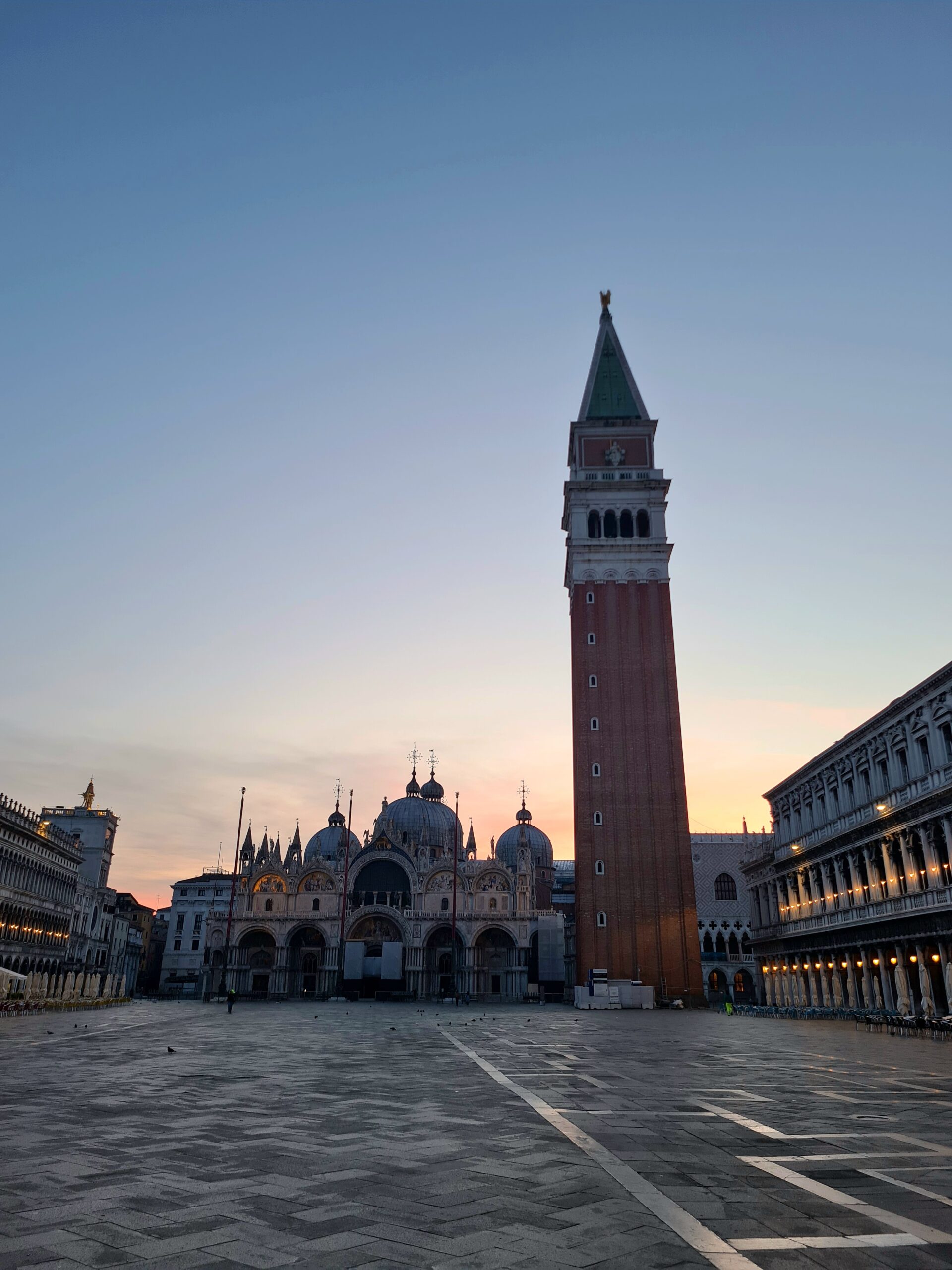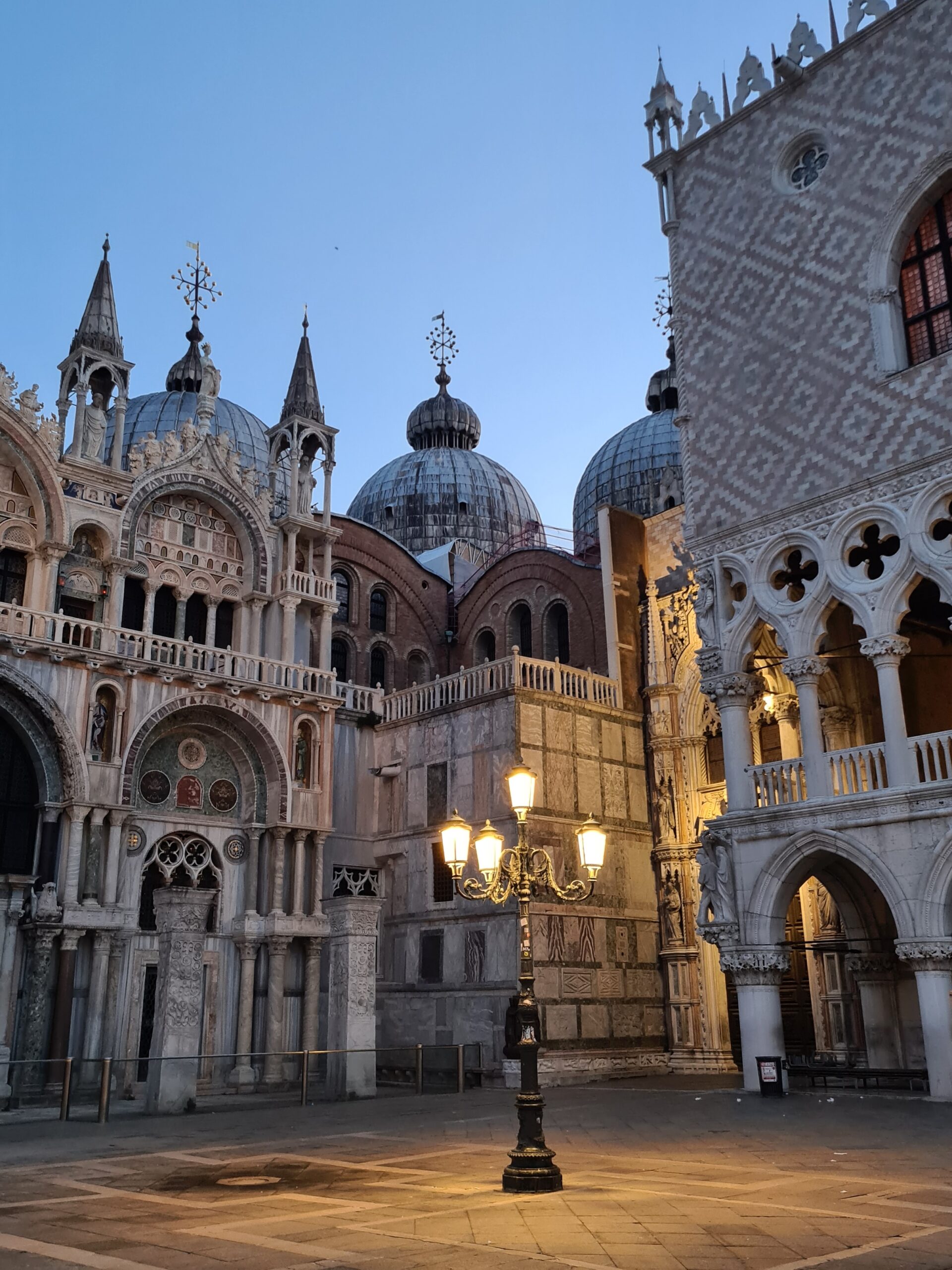 Nachts konnte ich nicht besonders gut schlafen und das war letztendlich ein Glück: Noch vor sechs Uhr machte ich mich erneut auf den Weg zum Markusplatz und nun hatte ich ihn fast für mich alleine. Was für ein Traum! Wer meint, dass es hier ohne Menschenmassen nicht geht, war wohl noch nie früh genug da.
