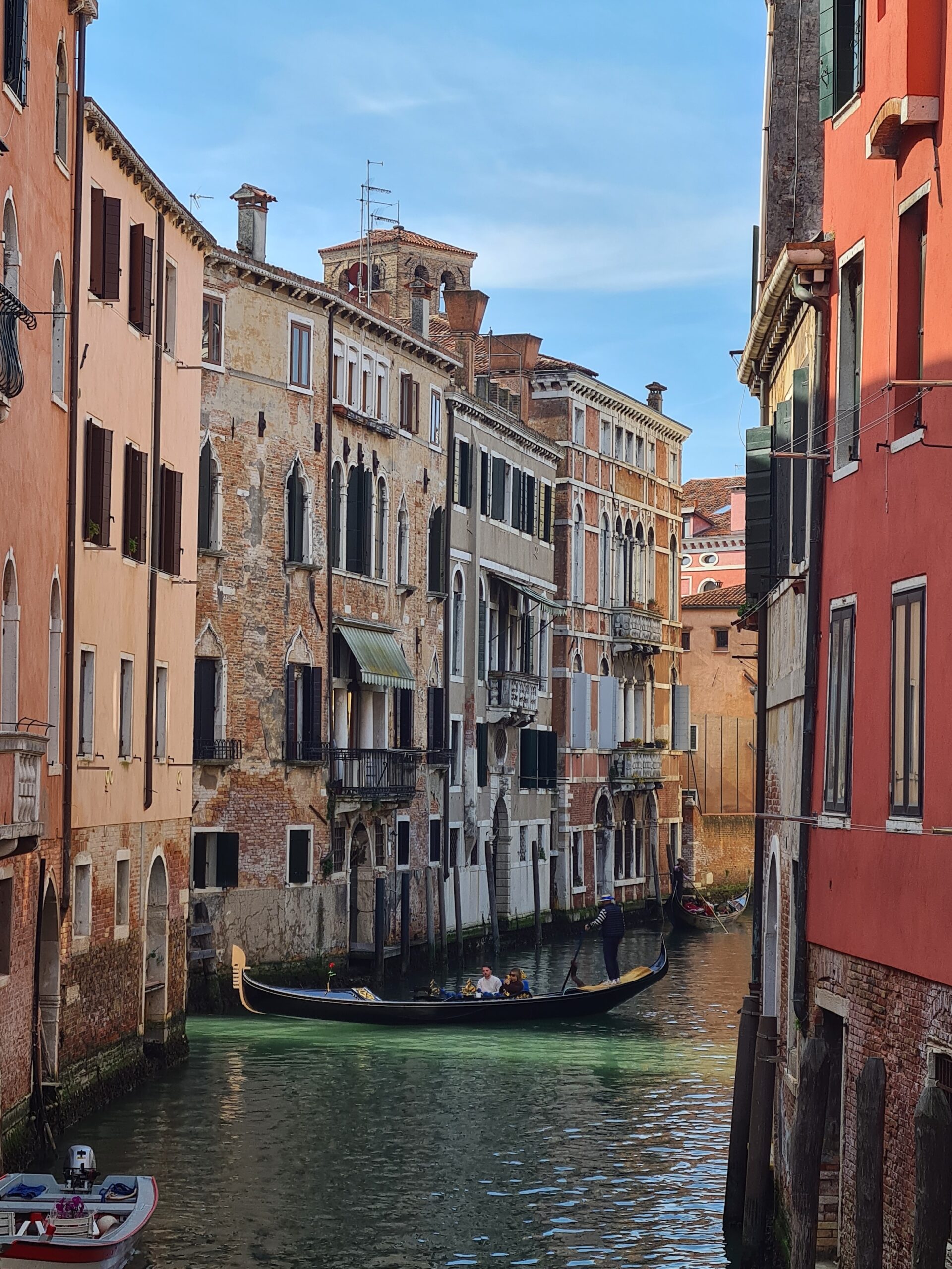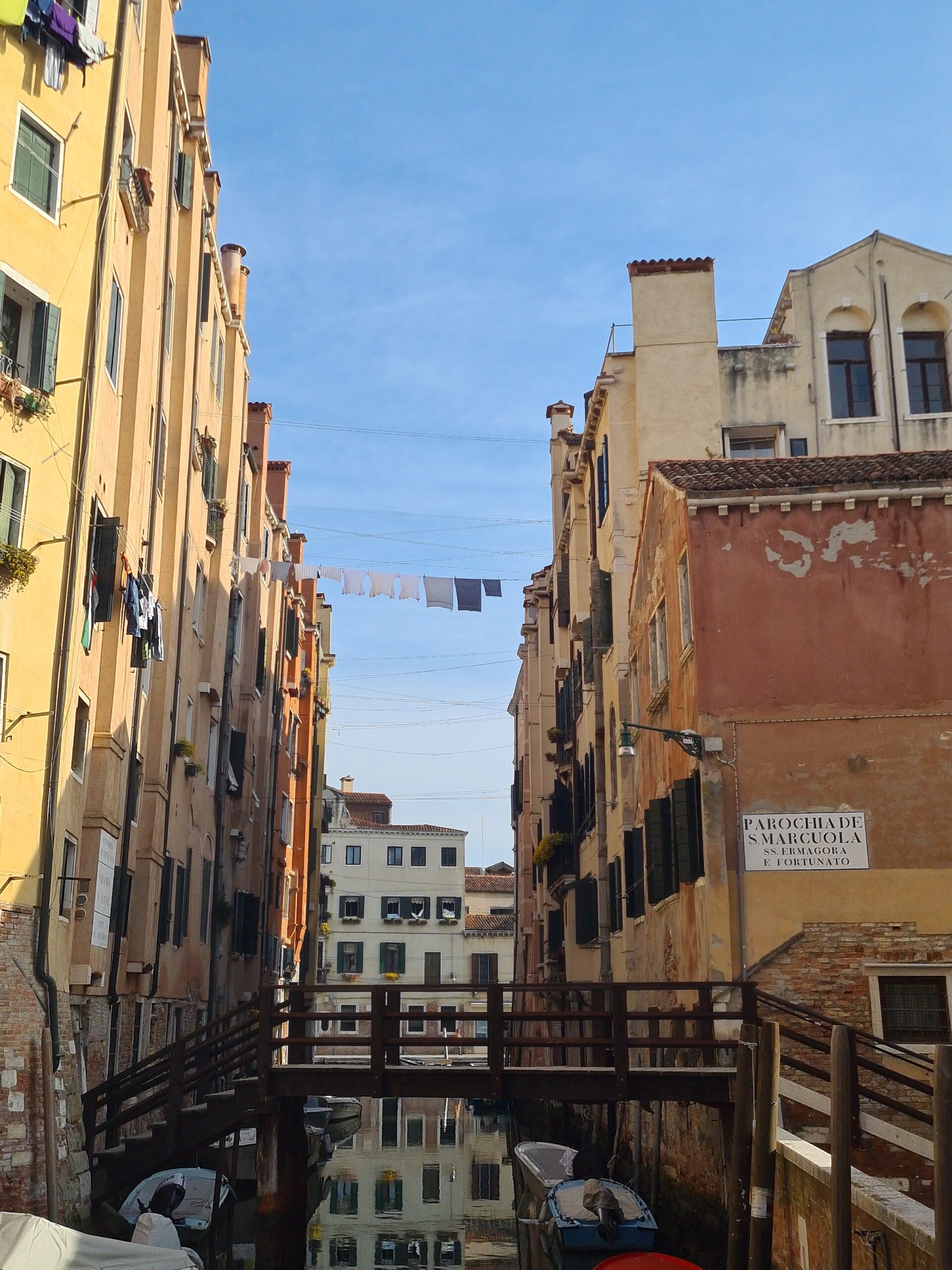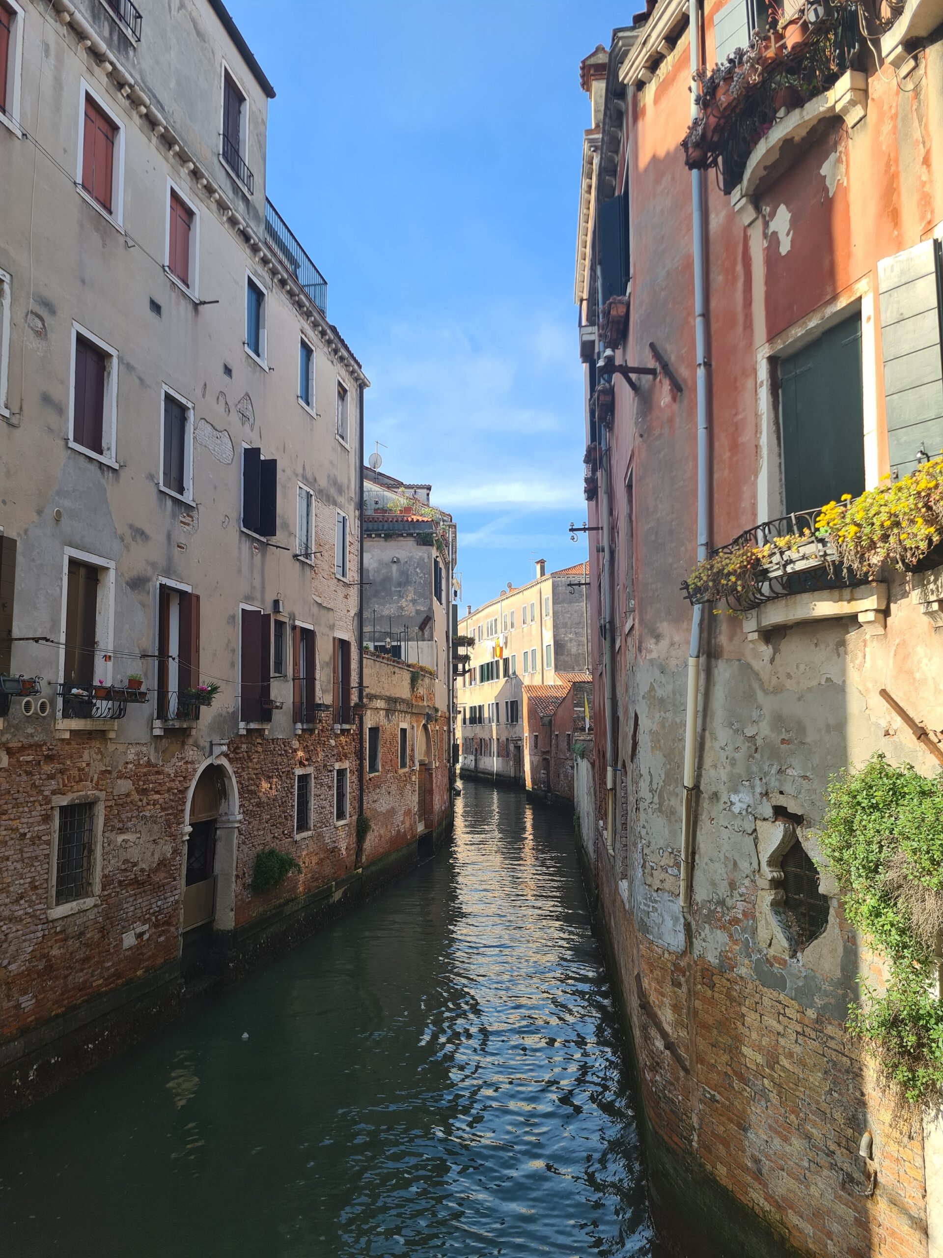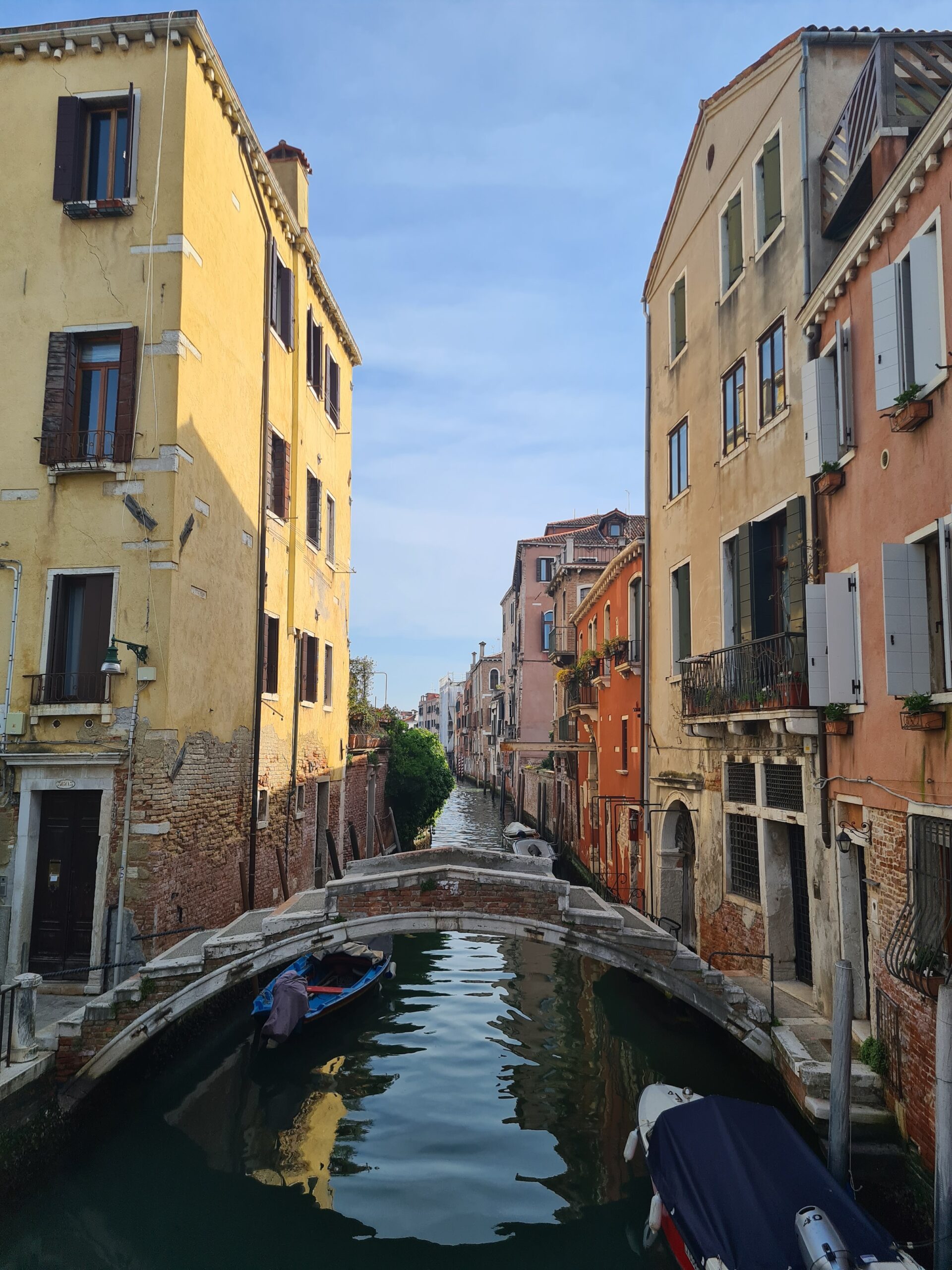 Die anderen Gassen waren zwar nicht ganz so eng, aber es gab doch eine Vielzahl an schmalen Gassen und Kanälen mit erstaunlich wenig Menschen. Manchmal war ich sogar ganz einsam unterwegs und machte viele Fotos – etwa von der Ponte Chiodo dar, der einzigen Brücke in Venedig, die keine Brückenbrüstung besitzt.
