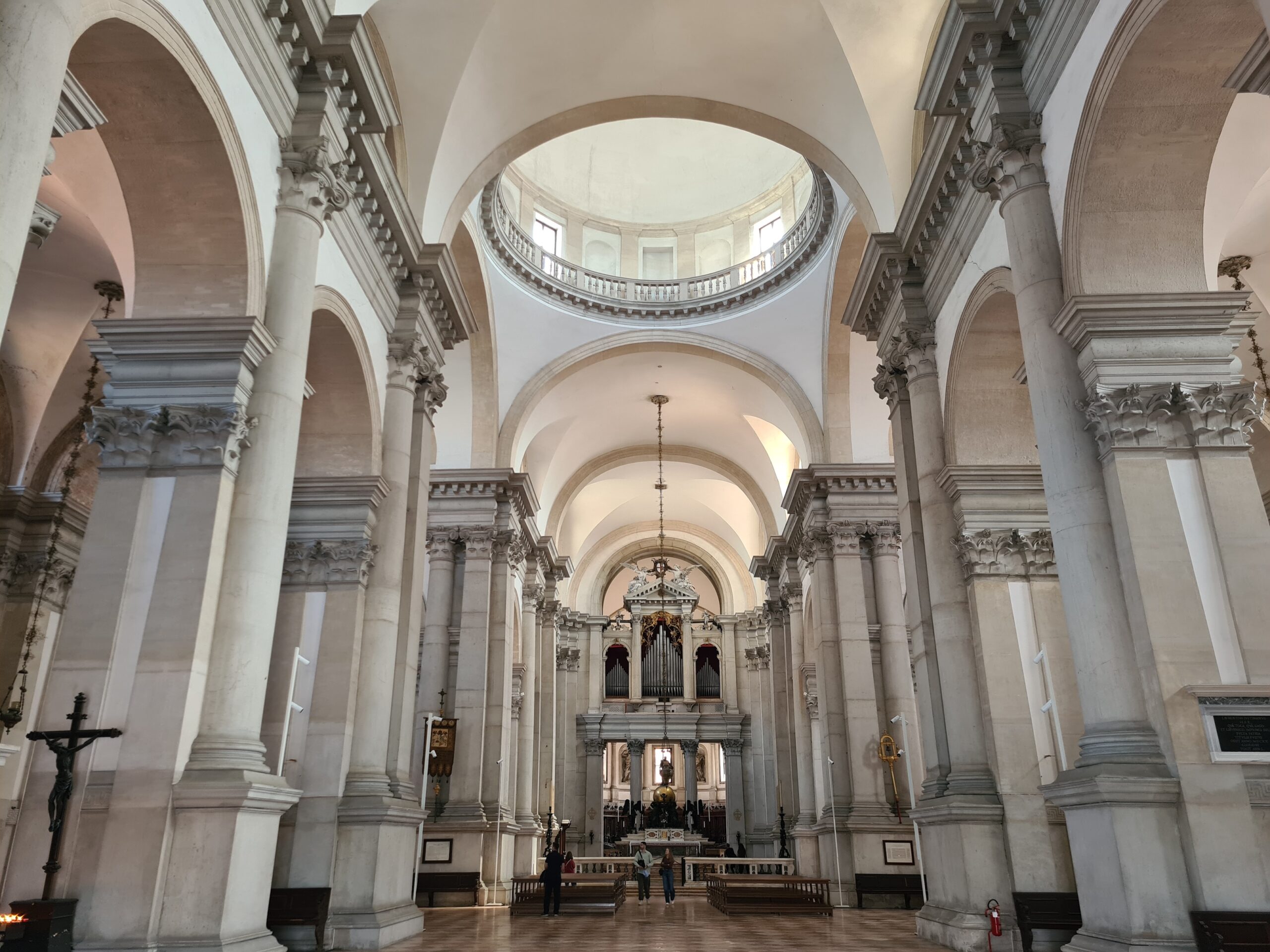 Danach fuhr ich ein wenig ziellos mit mehreren Vaporetti durch die Stadt (ich musste ja schließlich meine Tageskarte für die Wasserbusse nutzen), ehe ich auf der Insel San Giorgio Maggiore ankam. Ich besichtigte die namensgebende Basilika aus dem 16. Jh., die unerwartet schlicht ist.